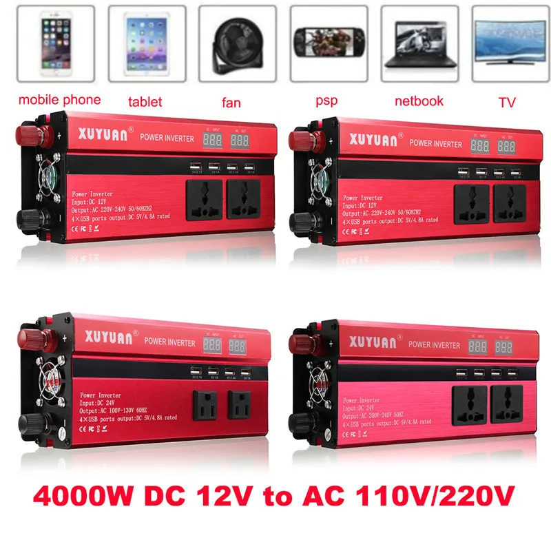 Инвертор, автомобильный преобразователь напряжения, с 110 в пост. Тока на 220 в перем. Тока, 4000в перем. Тока, Вт, инвертор с ЖК-дисплеем, инвертор солнечной установки