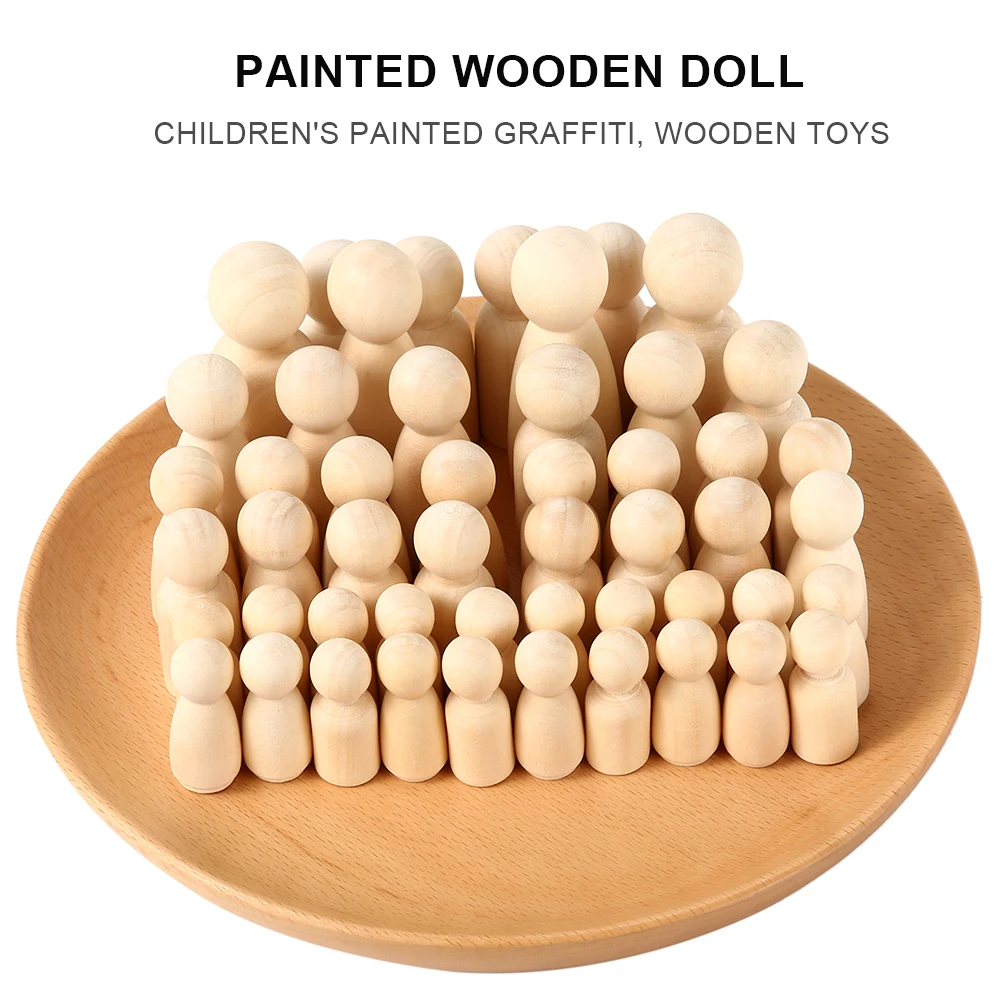Деревянные колышки для кукол, 50 шт., 65 мм, 55 мм, 43 мм, 35 мм, деревянные куклы для мальчиков и девочек, декор для детской комнаты, сделай сам, незаконченные деревянные колышки для кукол