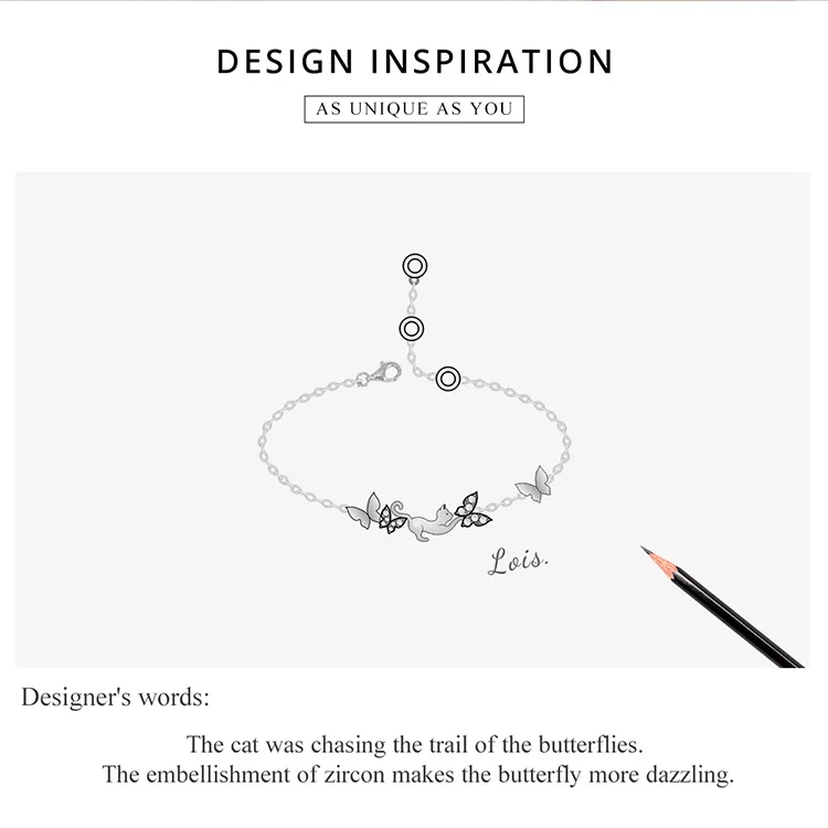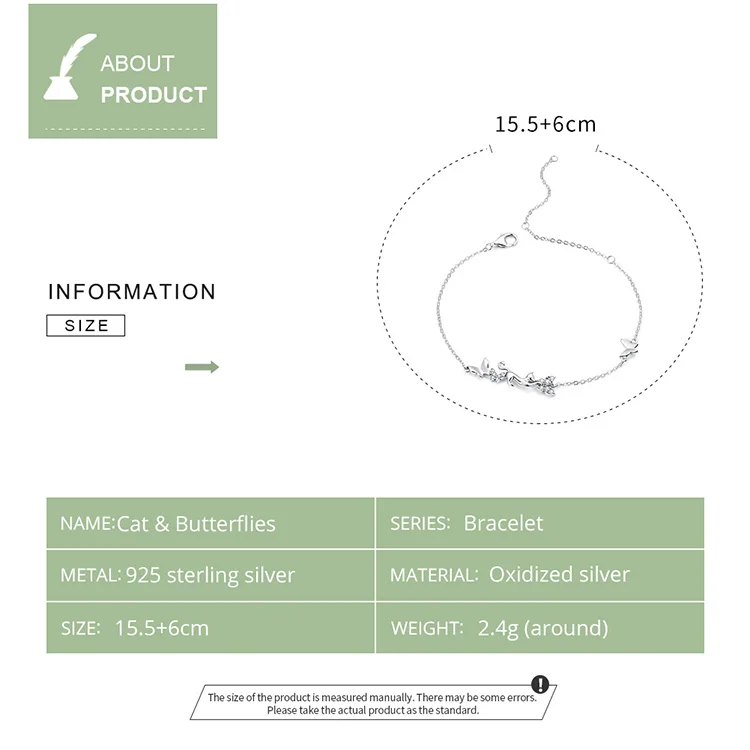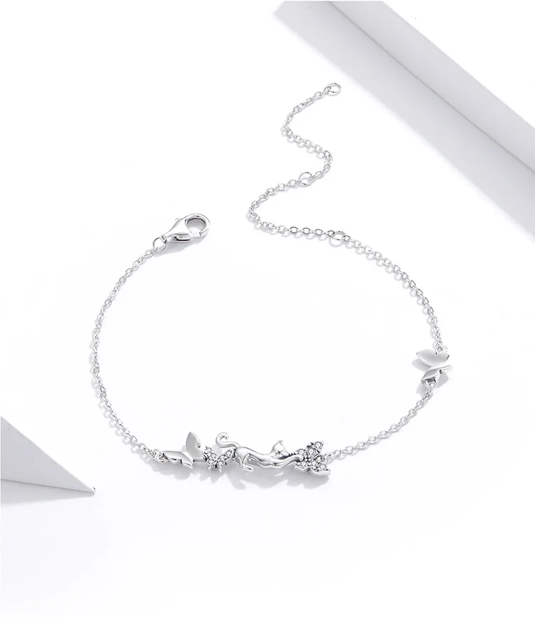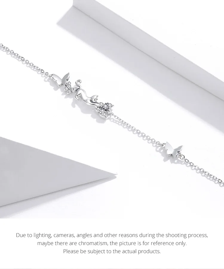 Материал:S925 + окисленное серебро + паве установка CZДлина: 15,5 + 6 смОписание:Кот гонял по следу бабочек. Украшение из циркона делает бабочку Более ослепительной.
