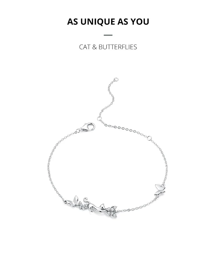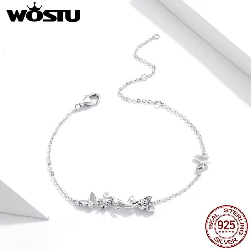 Женский браслет WOSTU, браслет из стерлингового серебра 925 пробы с цепочкой в виде котов и бабочек, подарки на годовщину, FIB195