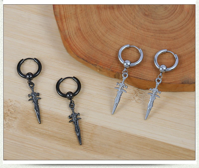 Серьги-гвоздики в стиле панк для мужчин и женщин, модные конические Серьги Из Нержавеющей Стали с мечом, в классическом стиле, 1 пара, подарочные украшения для ушей