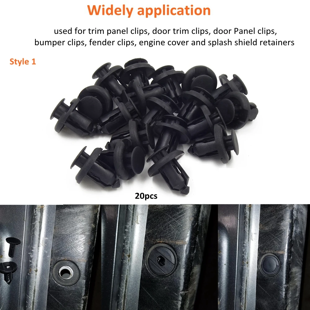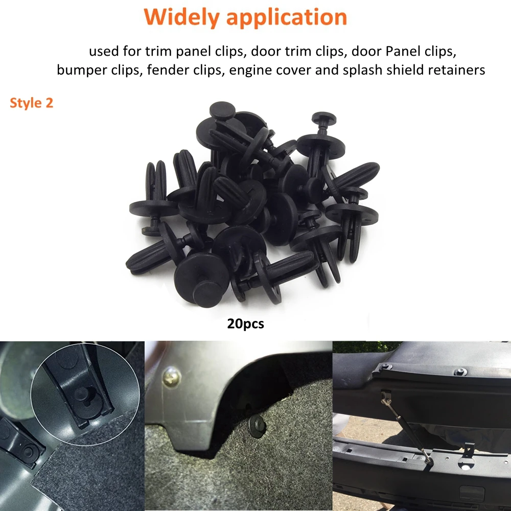 1. Шесть различных моделей нажимных пластиковых зажимов подойдут для большинства автозапчастей, крепко удерживают ваши детали.2. Изготовлен из высококачественного черного нейлонового материала, не изнашивается и не подвержен коррозии, не сломается и не трескается во время использования.3. Широко используется для отделки дверей, хомута, крыла, бампера, боковой юбки, решетки, крышки двигателя и защиты от брызг.
