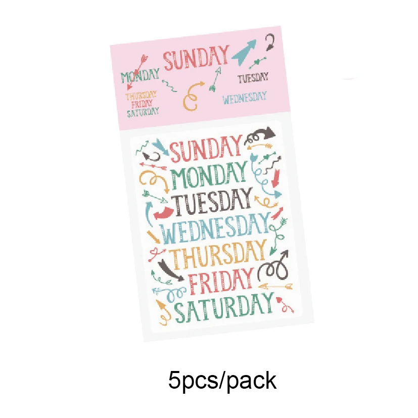 5 листовупаковка, самоклеящиеся наклейки с понедельника по воскресенье
