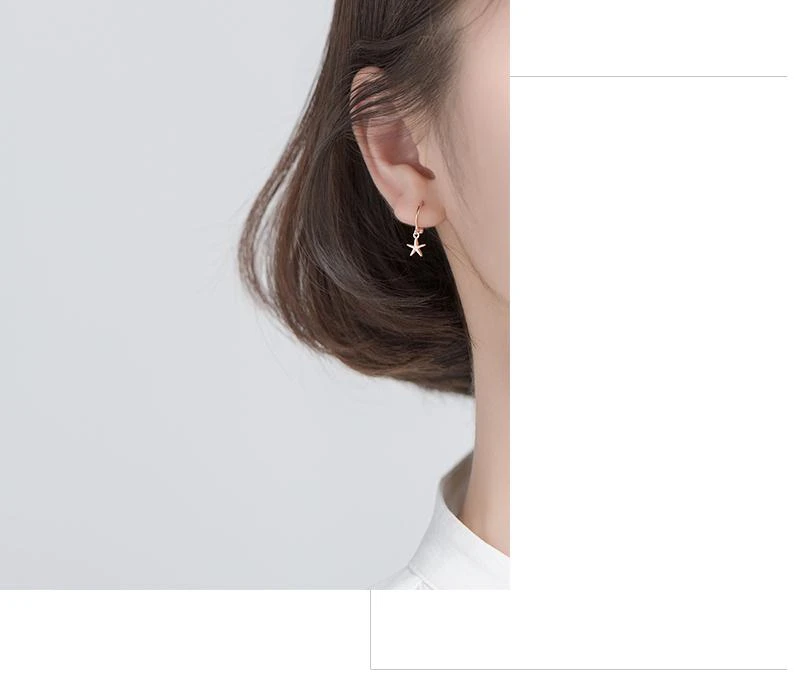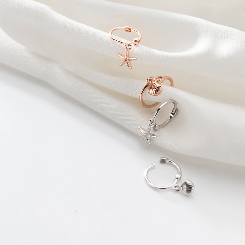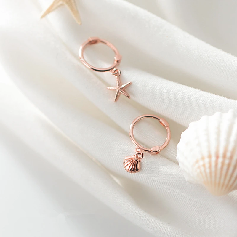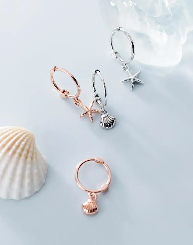 Серьги-кольца с морской звездой женские, милые Асимметричные ювелирные изделия из 925 пробы серебра с ракушками морских звезд