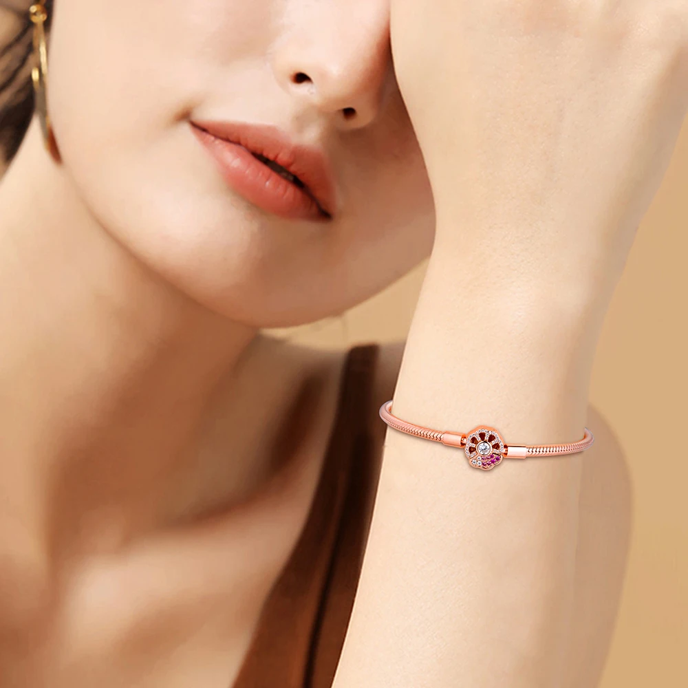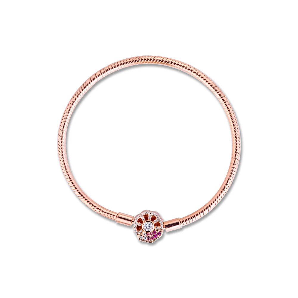 Женский браслет из серебра 925 пробы, с розовой застежкой-веером