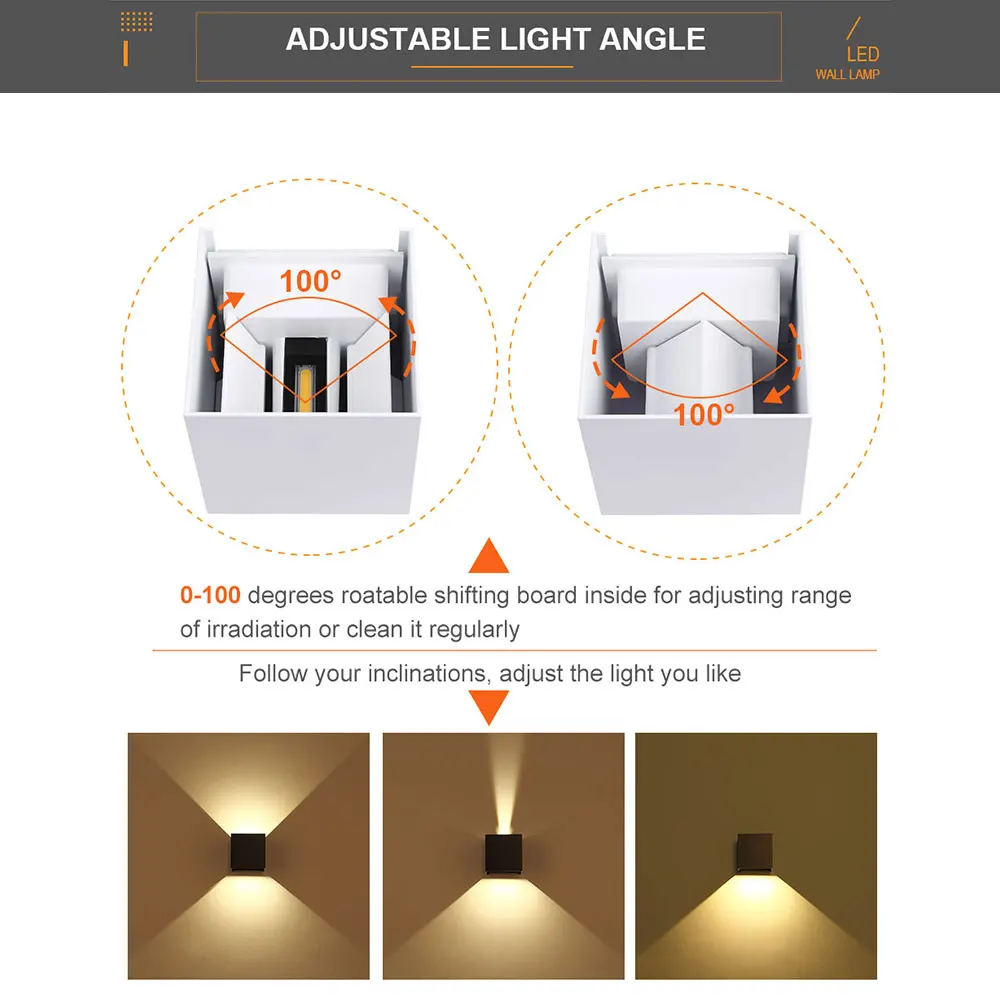 Светодиодный настенный светильник IP65 6 Вт 12 Вт, уличный водонепроницаемый, с регулируемым углом, современный настенный светильник для сада, ворот, крыльца, коридора
