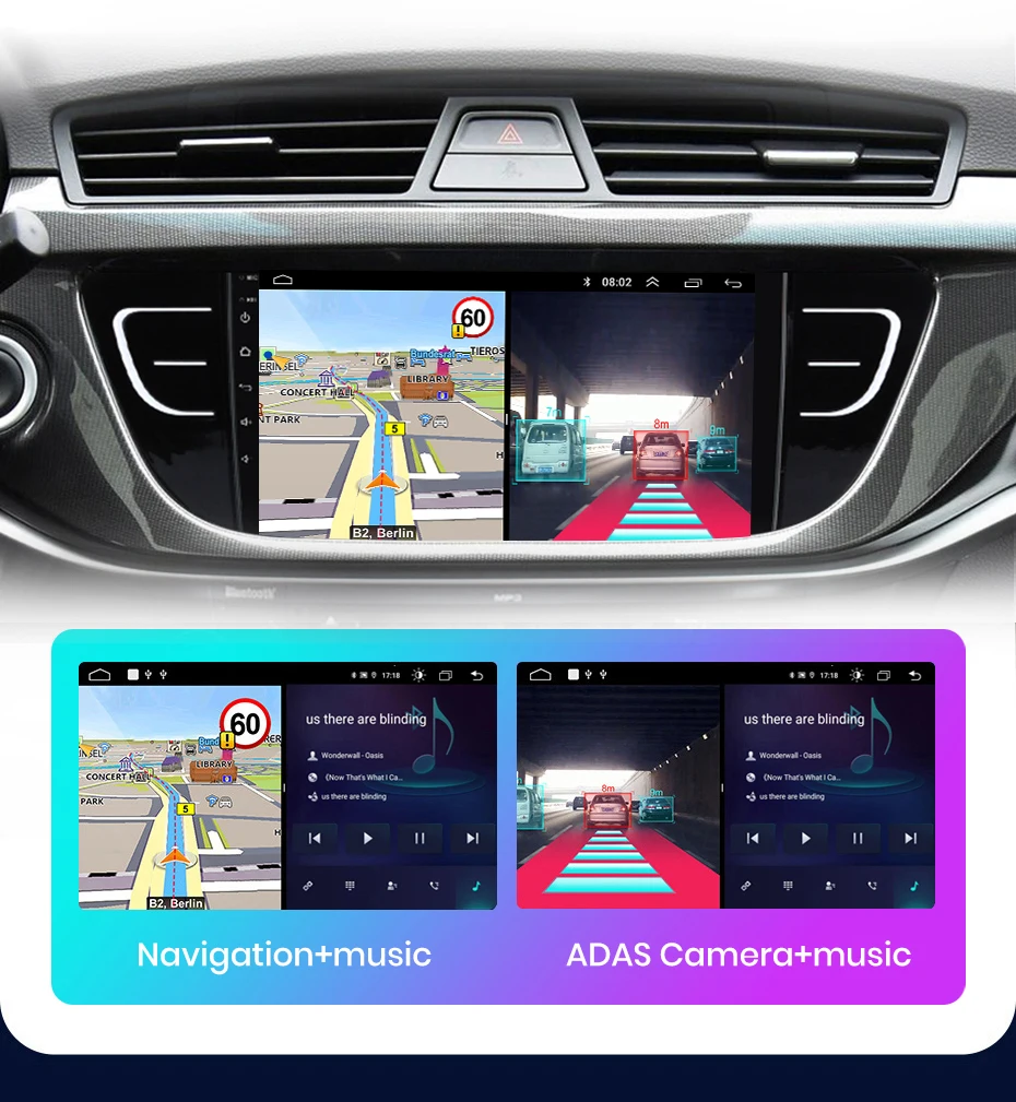 Вы можете использовать навигацию и другие приложения одновременно, такие как прослушивание музыки или включение функций ADAS и т. Д.