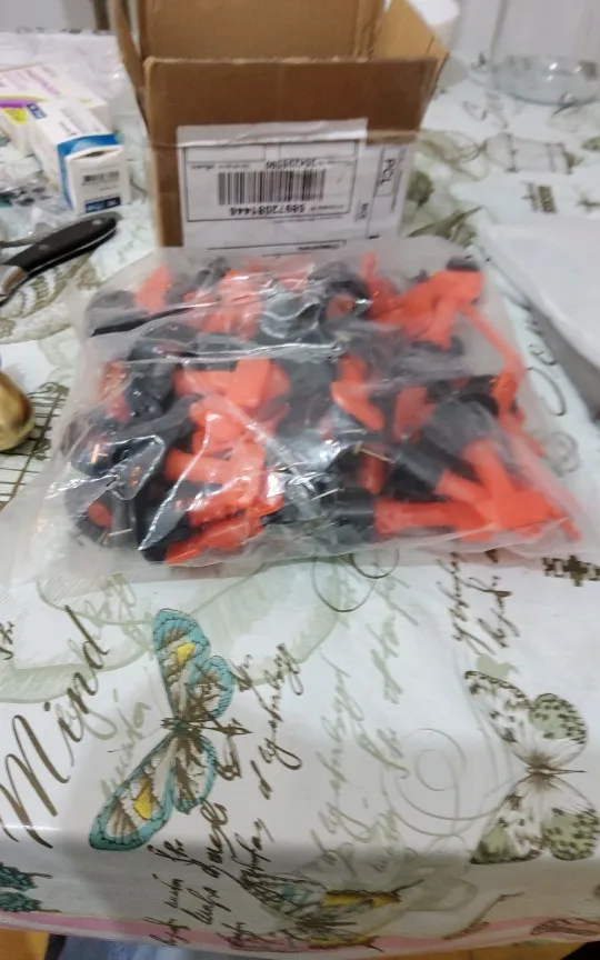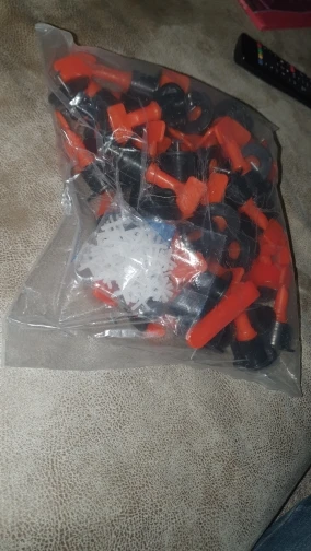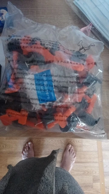 Товар получил. Пришло очень быстро, потому что доставка из России. Клинья выглядят качественно, есть ключ для подтяжки углов плит, положил продавец крестики. Ставлю продавцу две пятёрки. СПАСИБООО!