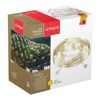 Уличная светодиодная гирлянда (теплый свет) Vegas Сеть 144 LED (36 мигающих), 1,2х1,5 м, 24V 55035