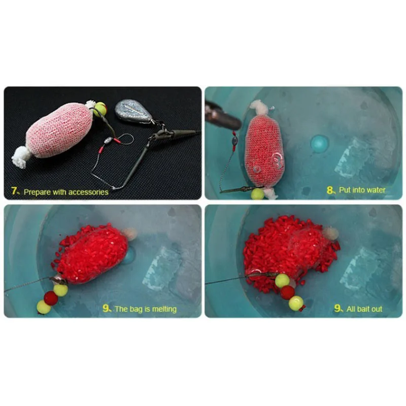 Сетчатая СумкаРастворВ воде, может обеспечить точный Матрешка эффект, крюк и приманки, гибкий и простых в использовании, используется для Карп Рыбалка приманка кормушка.