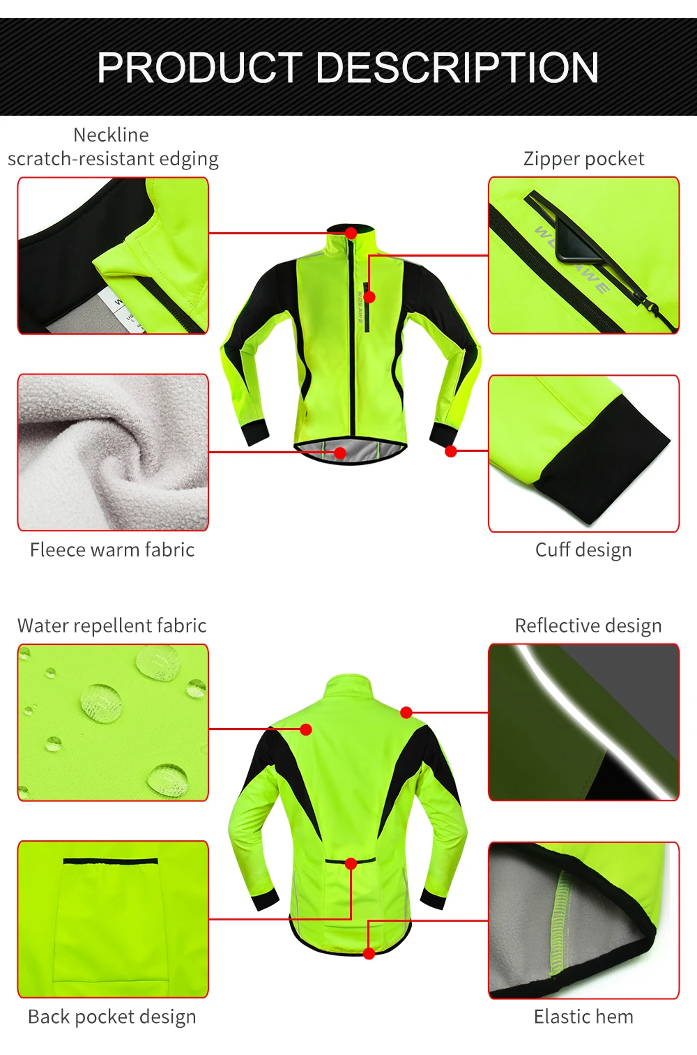 Светоотражающая зимняя велосипедная куртка WOSAWE, флисовая, теплая...