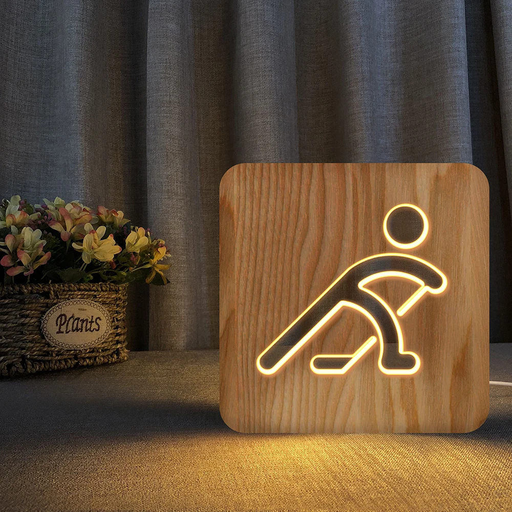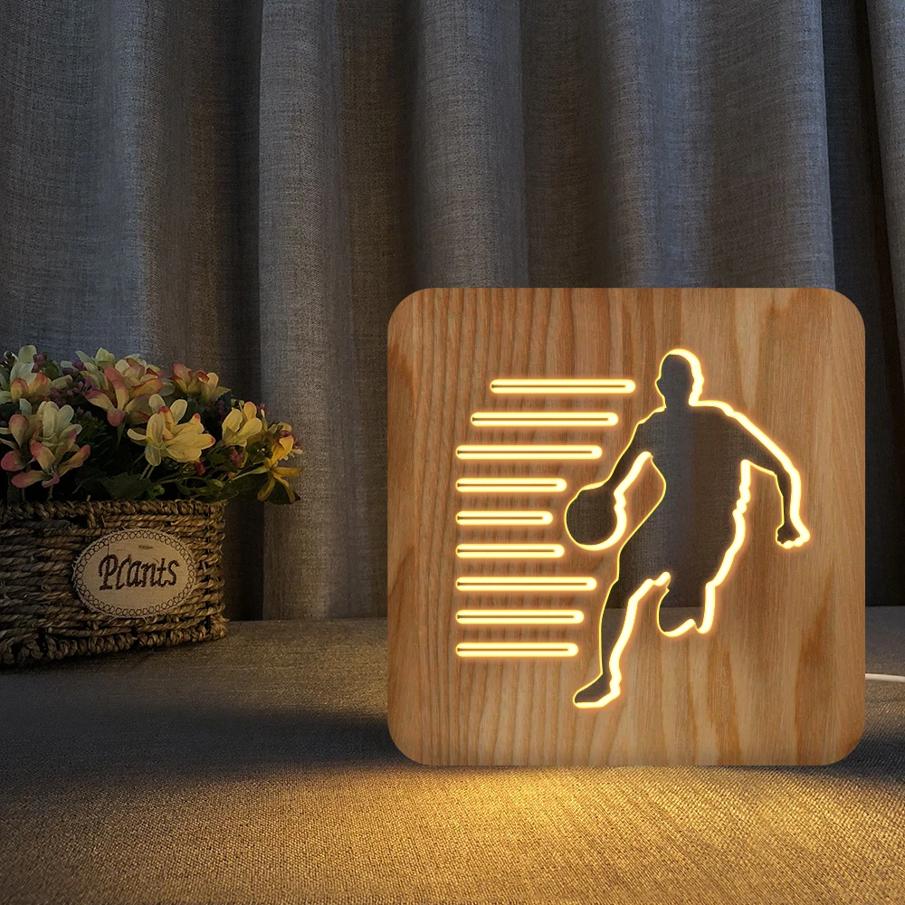 Деревянный 3D светодиодный ночсветильник для футбола, баскетбола, хоккея, настольная лампа с USB-разъемом, настосветильник лампа для детей, подарок на Рождество, Новый год
