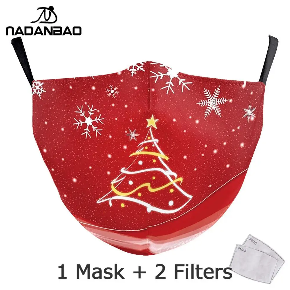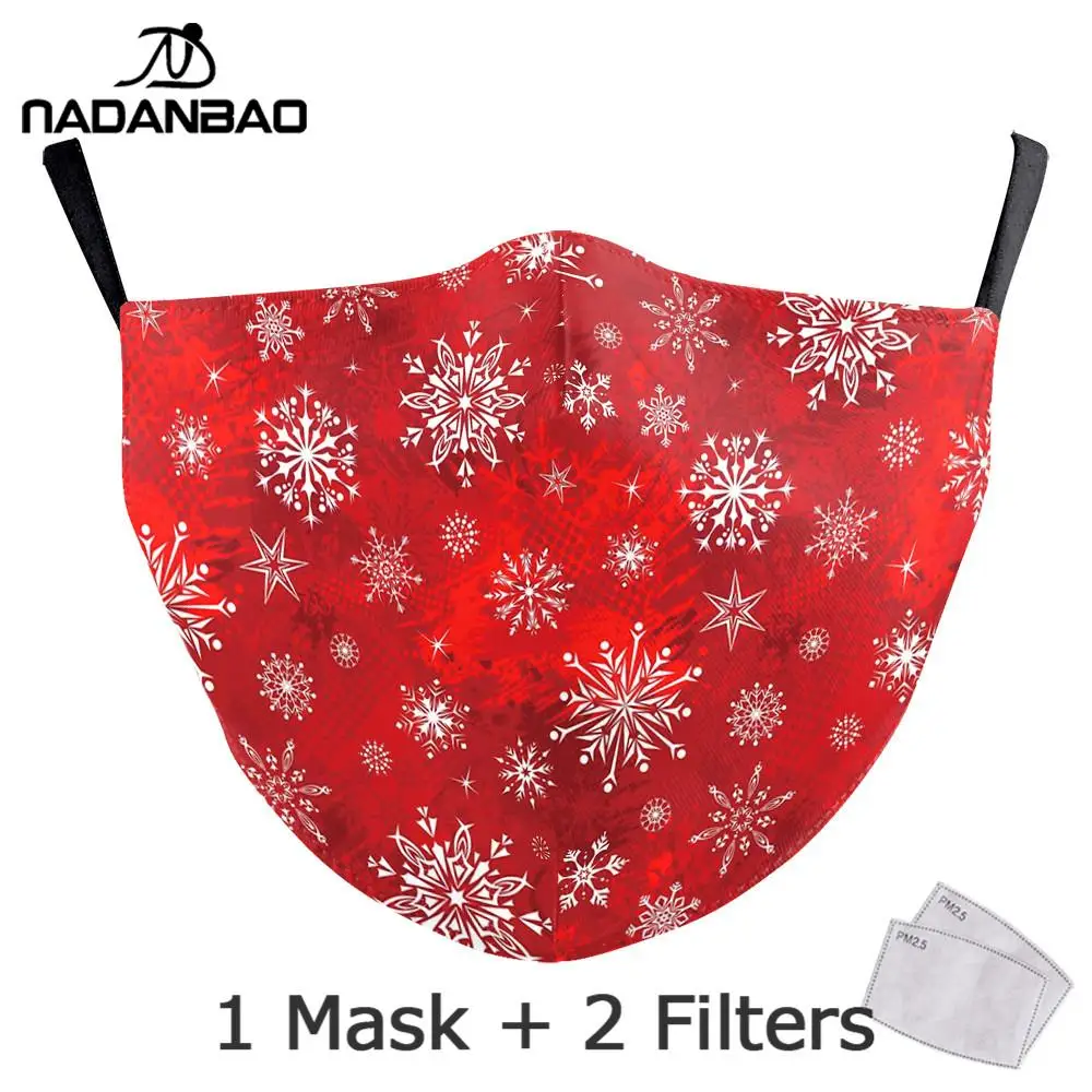 2020, рождественские маски NADANBAO с принтом, снеговик, снежинка, женские модные милые детские маски, многоразовые моющиеся маски для лица красного цвета