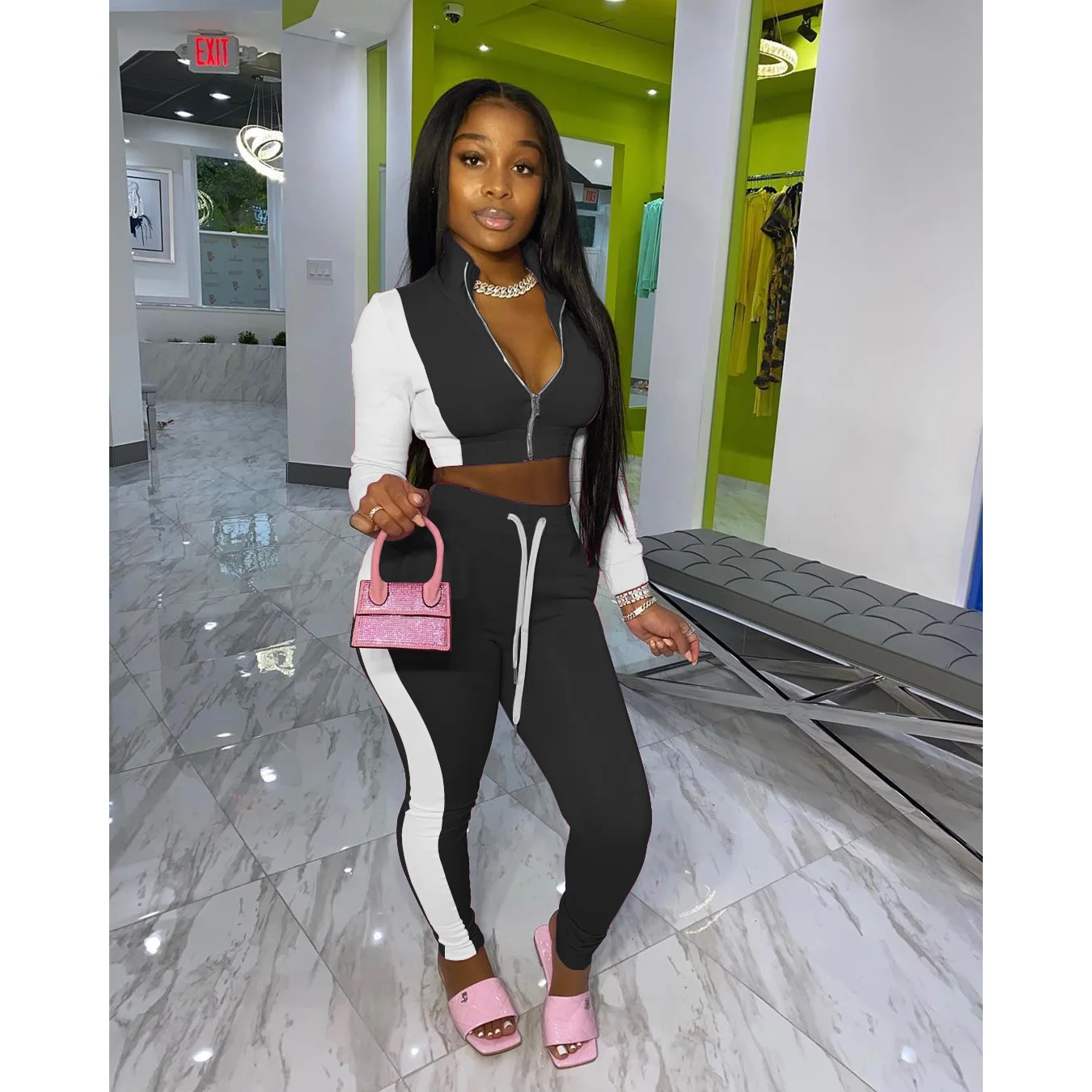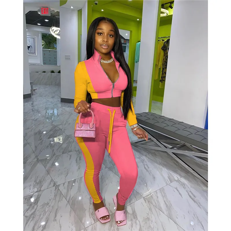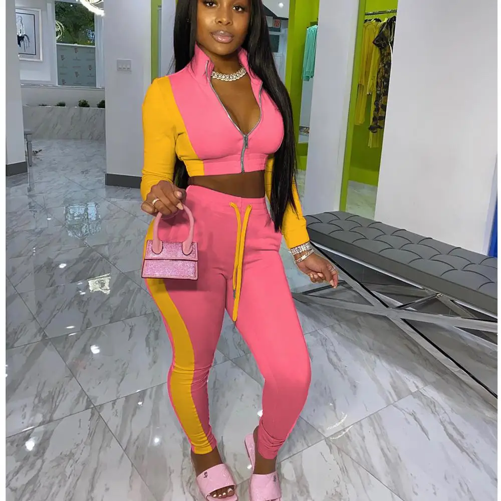 Спортивный костюм hirigin, спортивный, лоскутный, Женский комплект из двух предметов, спортивный костюм для активного отдыха и фитнеса