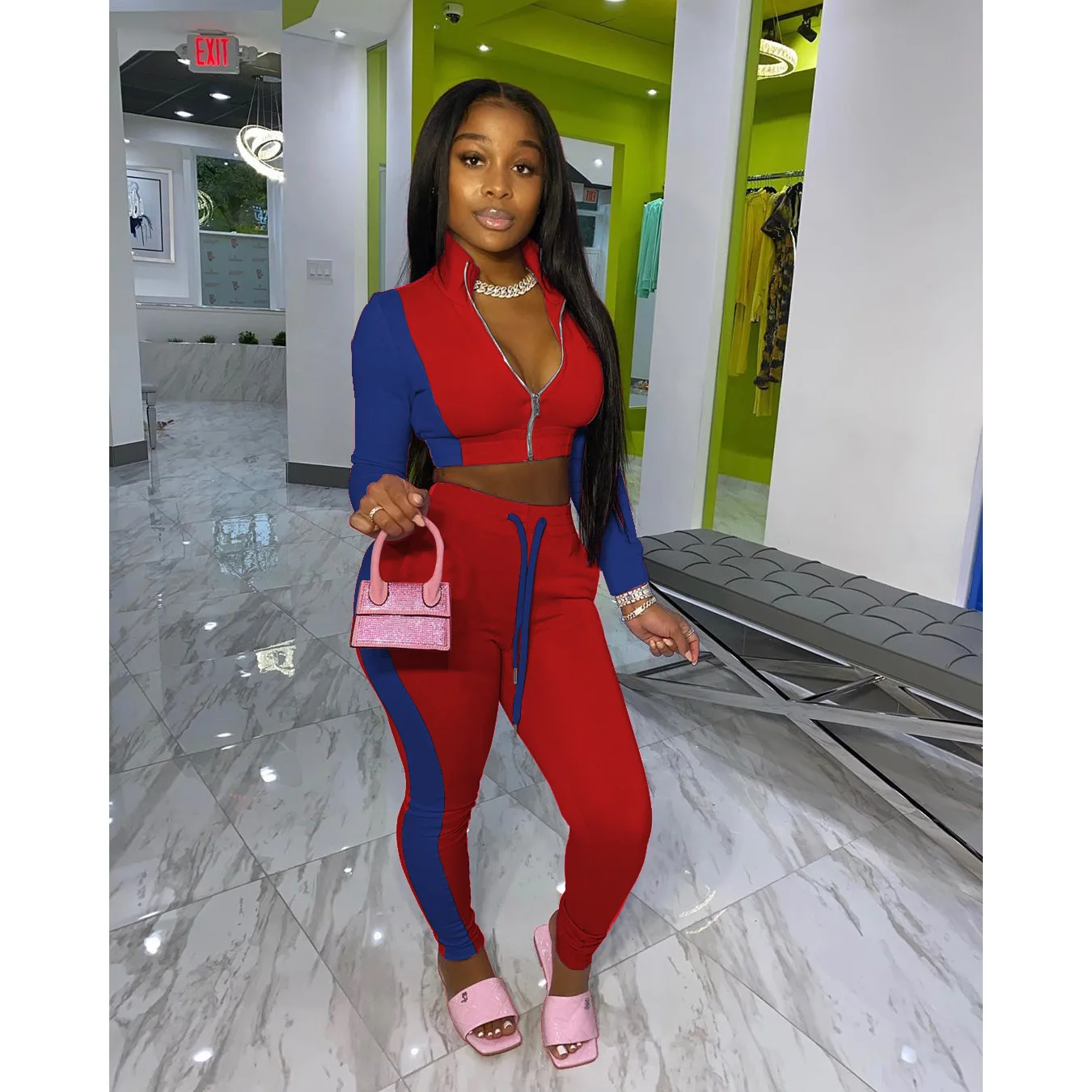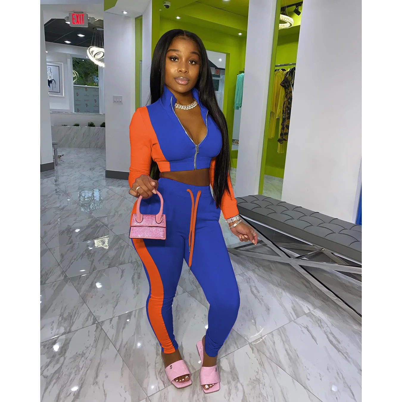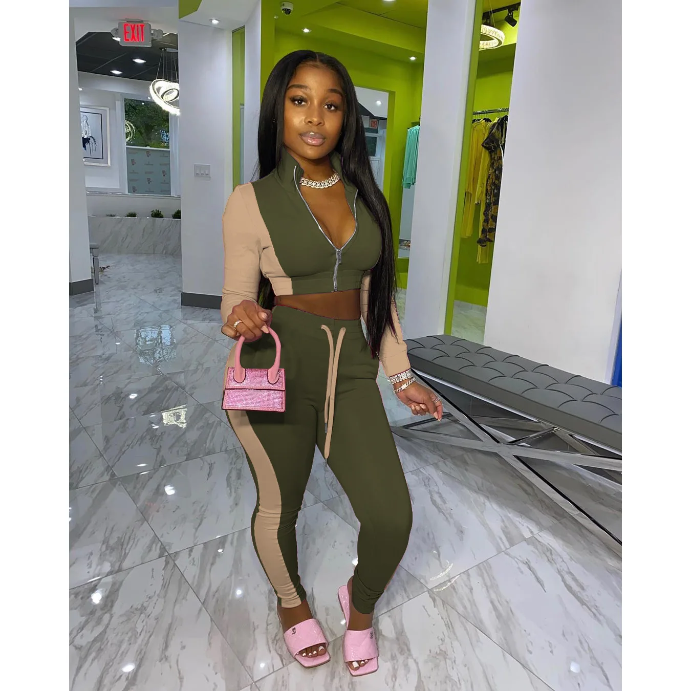 Спортивный костюм hirigin, спортивный, лоскутный, Женский комплект из двух предметов, спортивный костюм для активного отдыха и фитнеса