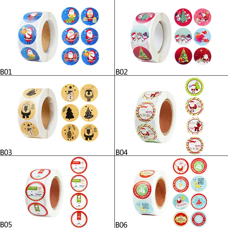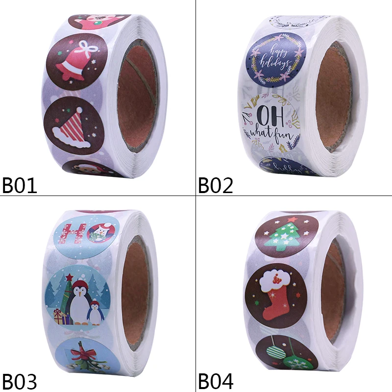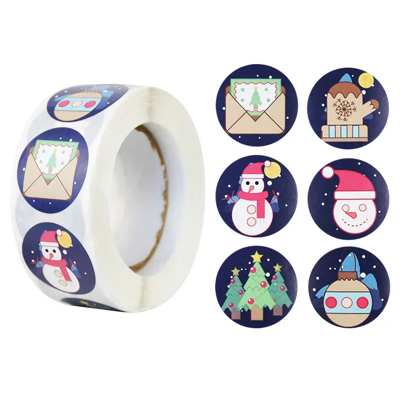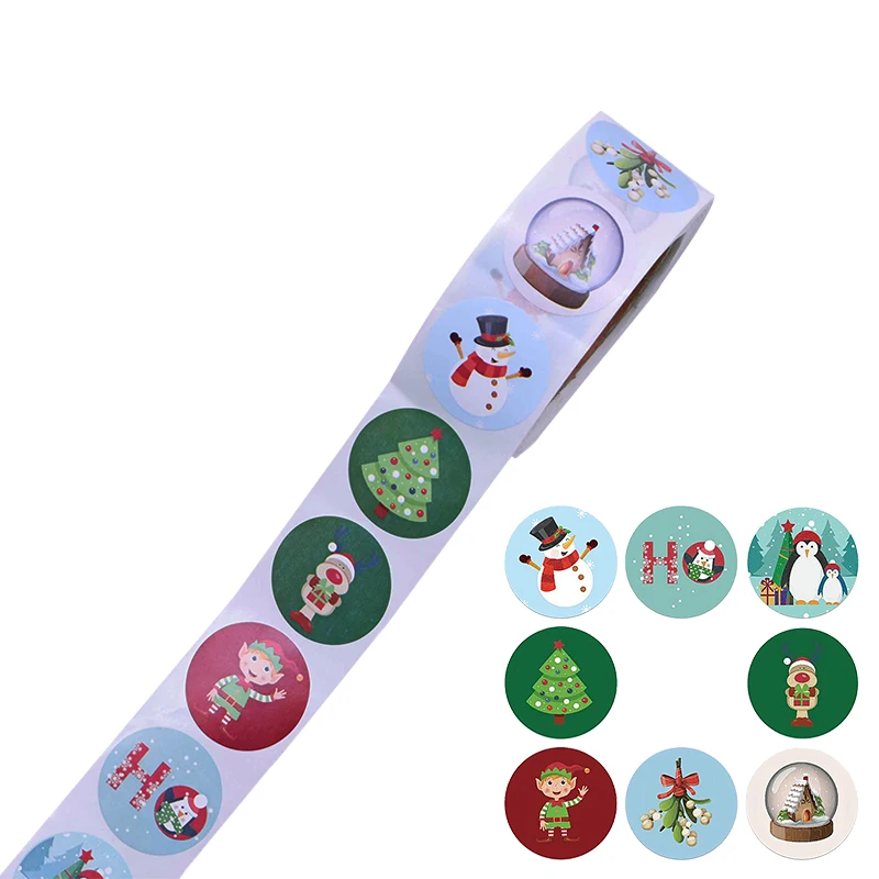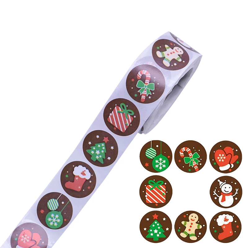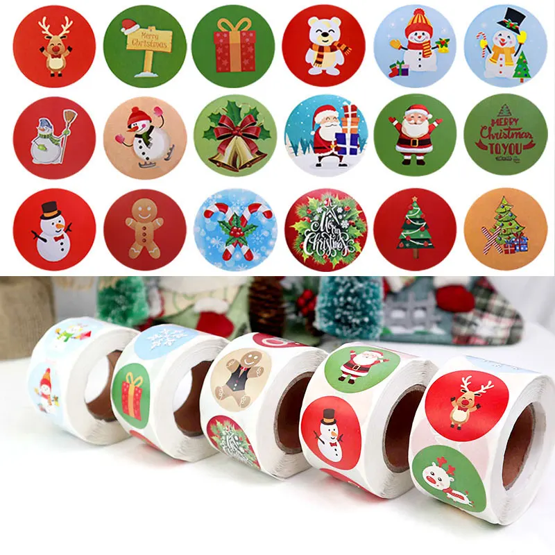 500 шт./рулон, круглые 1 дюйм, рождественские наклейки, скрапбукинг, стикер для канцелярских товаров, Новогодняя Подарочная коробка, упаковка, герметичные наклейки
