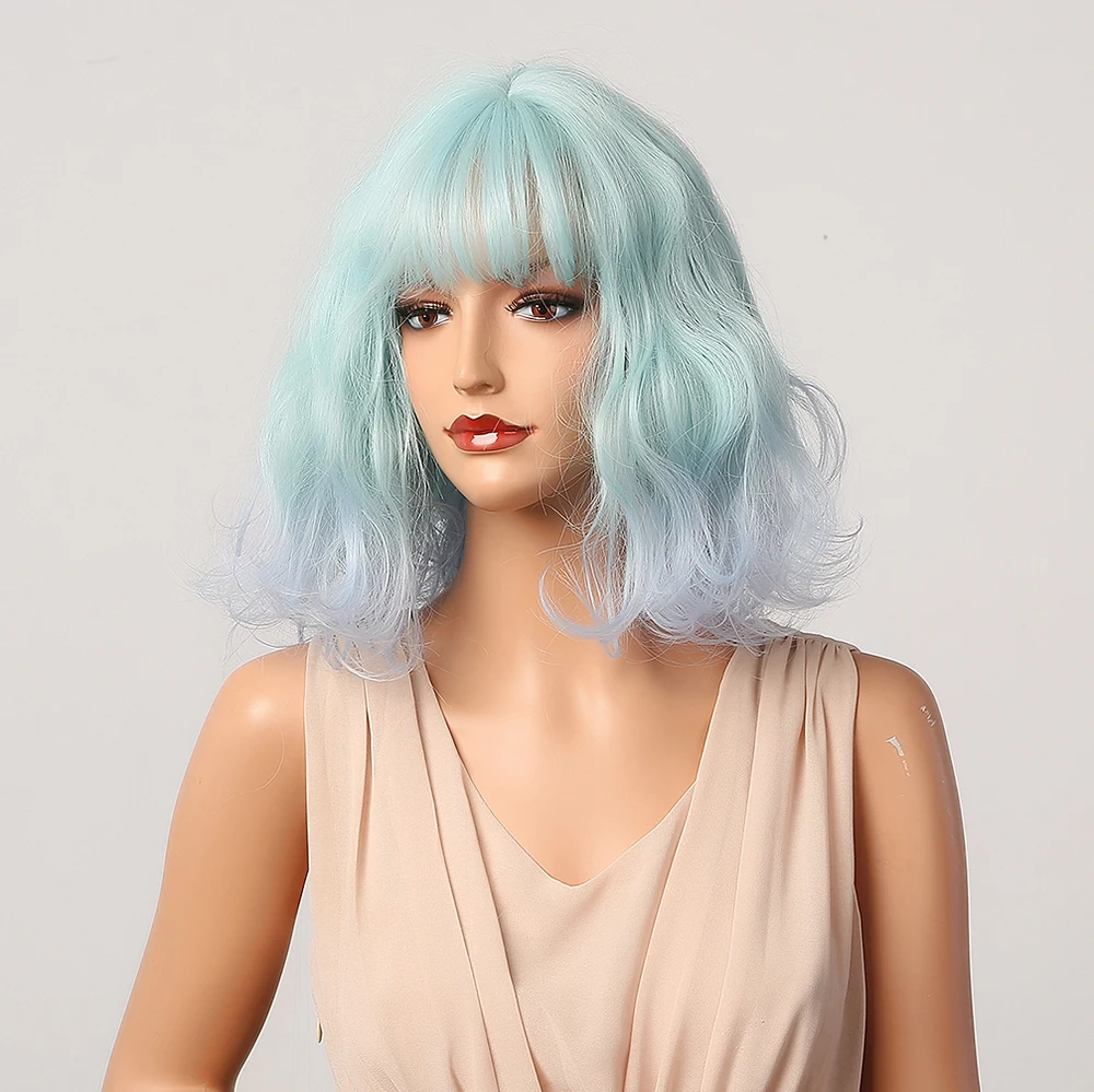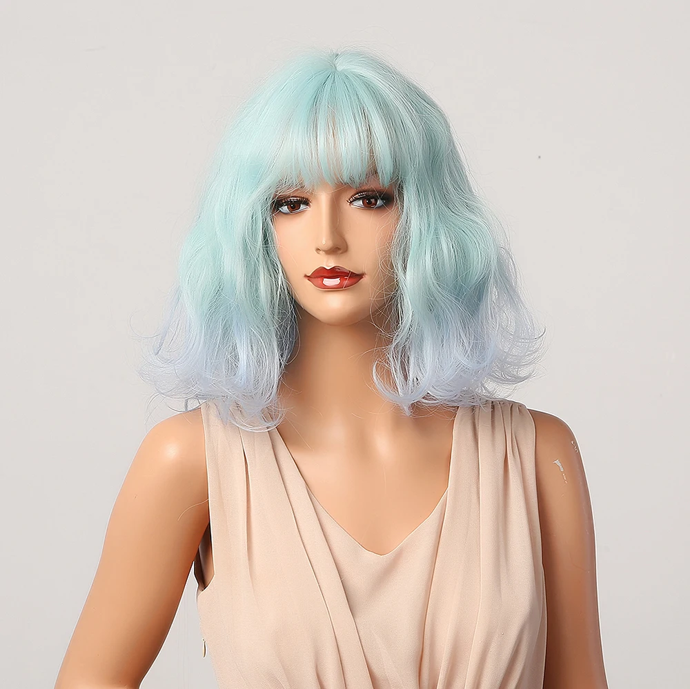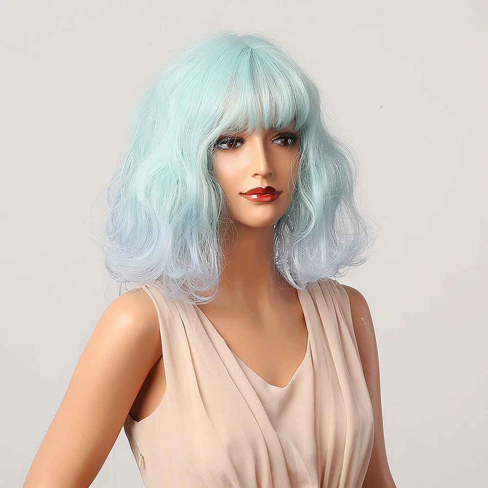 Генри MARGU короткие Bobo волнистые синтетические парики с челкой Omber светильник, зеленый, небесно-голубой, Косплэй вечерние Лолита милый парики для Для женщин и девочек