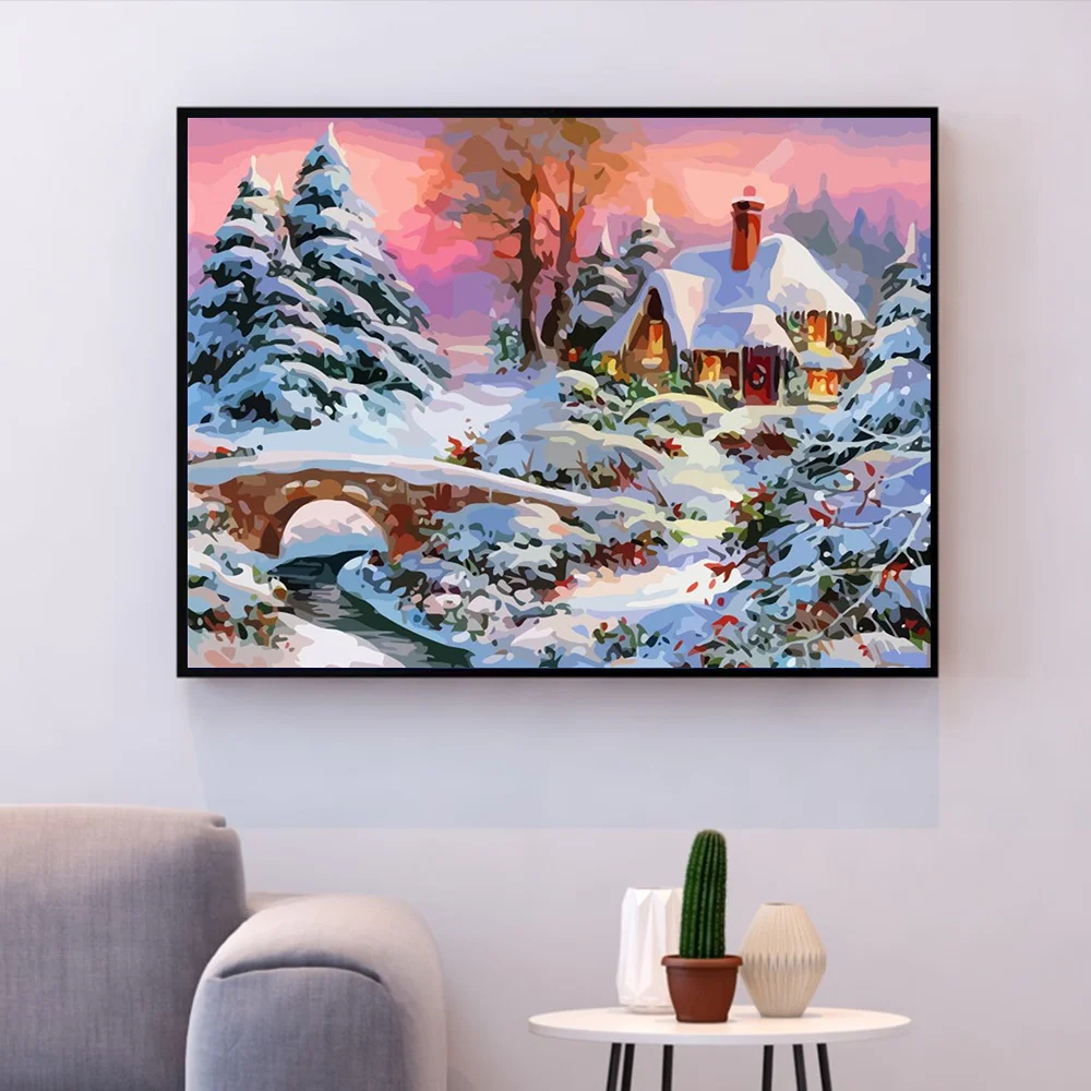 HUACAN живопись по номеру дом рисунок на холсте Ручная роспись искусство подарок DIY фотографии по номеру зимние наборы домашний декор