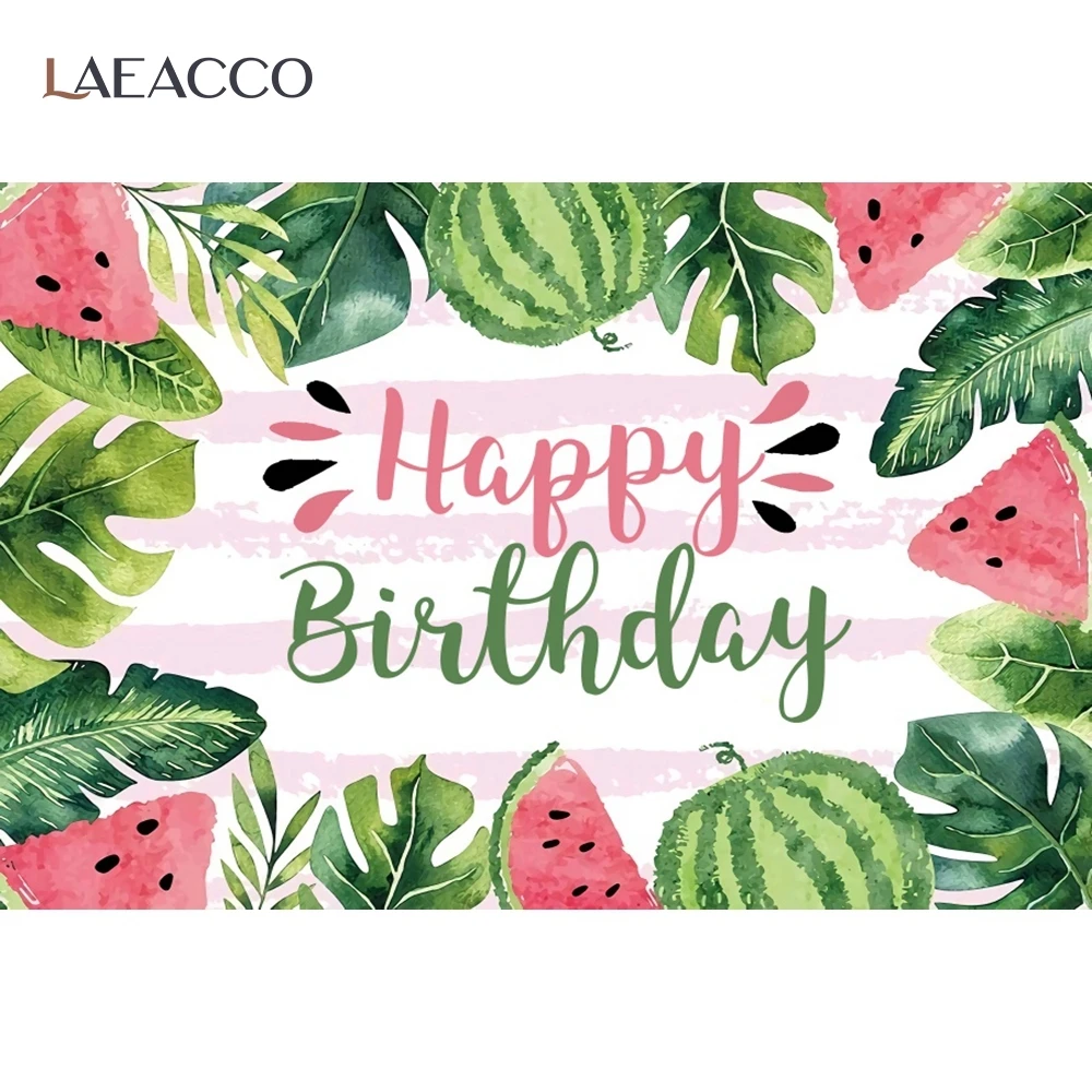 Laeacco день рождения, Фотофон в полоску, арбуз, тропические листья, летняя фотография, фоны для детского душа, Фотостудия