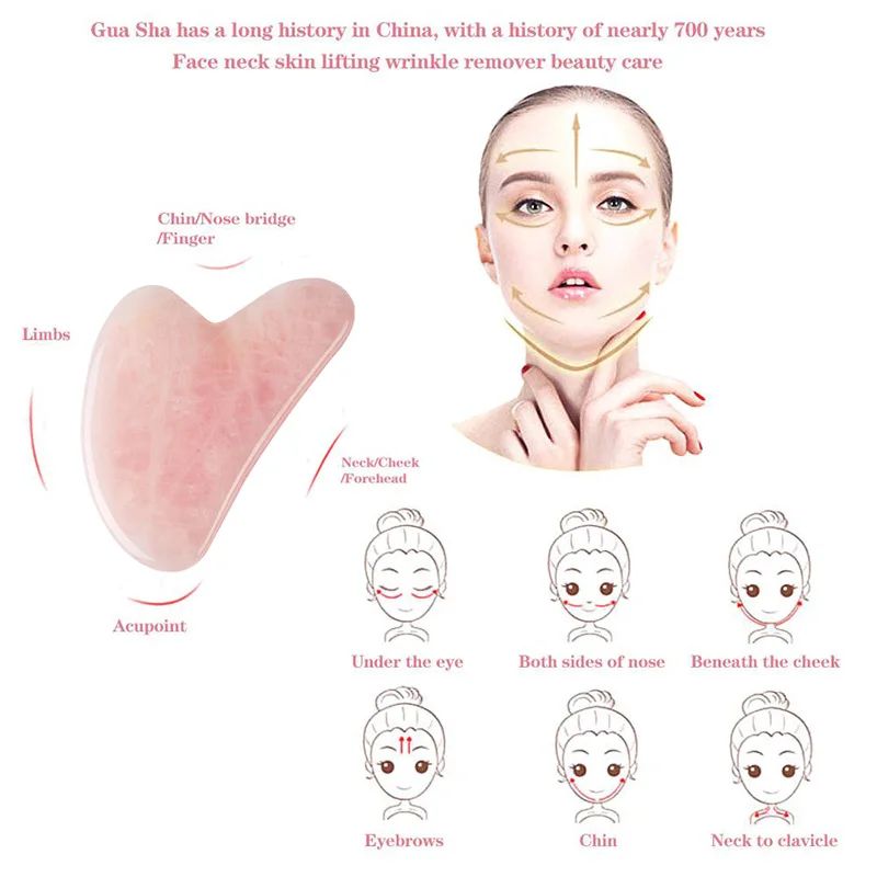 Массажер для лица с натуральным розовым кварцем и нефритом, скребок для гуаши, массажер для лица и тела, Гуа Ша, доска для подтяжки подбородка, уход за телом, для похудения