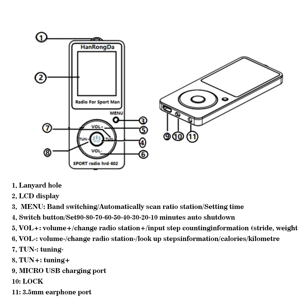 Портативный радиоприемник HanRongDa, FMAM радио с ЖК-дисплеем и кнопкой блокировки, карманное радио с наушниками, 9 кГц10 кГц