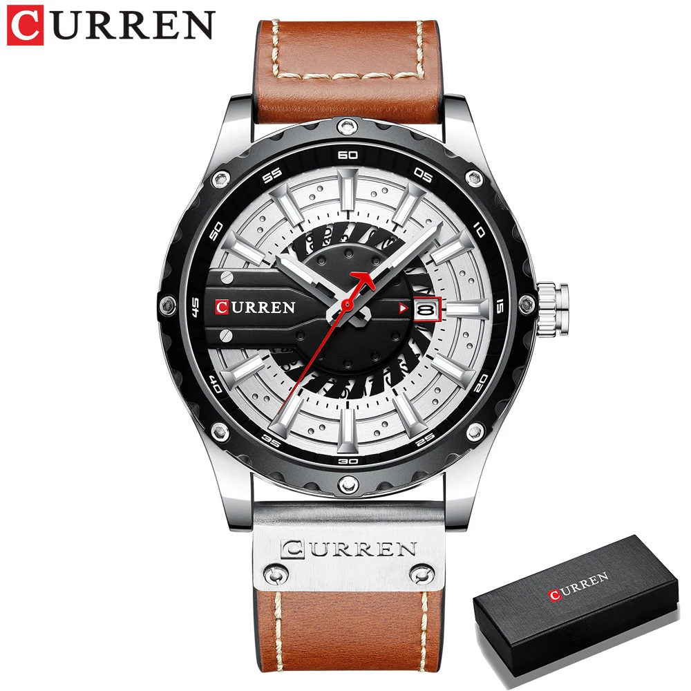 Мужские часы CURREN, повседневные наручные часы с кожаным ремешком,...