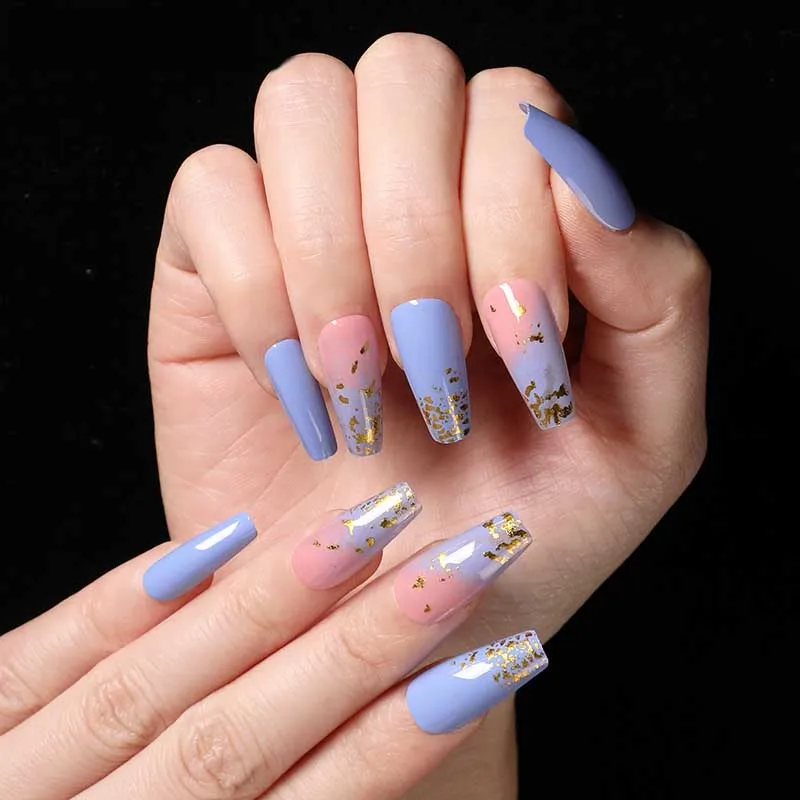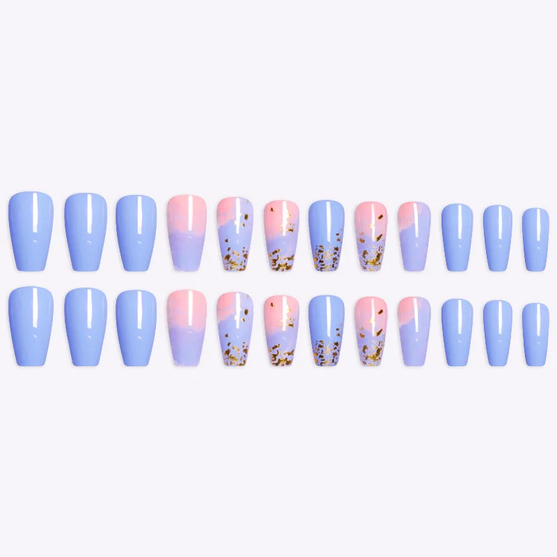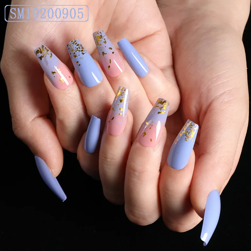 24 шт. Пластыри для дизайна ногтей ношение ногтей синий Платиновый порошок поддельные ногти европейские и американские ногти TY