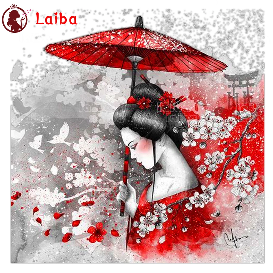 Домашнее искусство Алмазная картина Японская женщина 5d DIY Алмазная вышивка квадратная круглая Алмазная мозаика красный зонт, вид цветения вишни