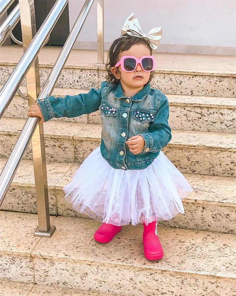 Осенняя куртка для маленьких девочек Blotona, джинсовые пальто, синяя джинсовая однобортная верхняя одежда с блестками, заклепками, карманами и длинным рукавом, женская одежда