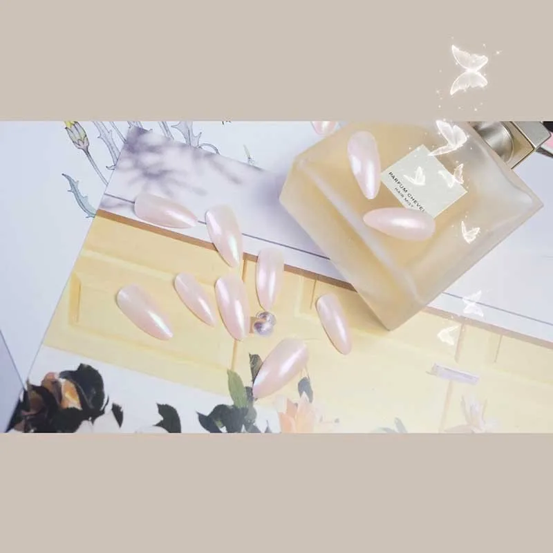 24 шт., акриловые накладные ногти с эффектом омбре, жемчужно-розовые, супер длинные, на шпильках, цветные, глянцевые, акриловые наборы для ногтей с клеем