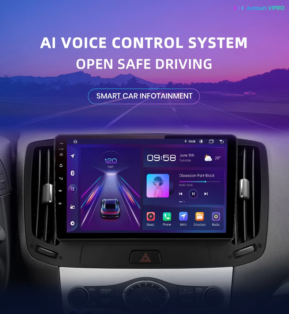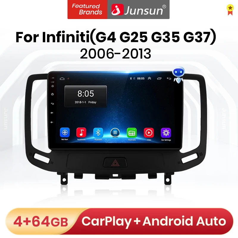 Мультимедийная магнитола Junsun V1 Pro, мультимедийный плеер на Android 10,0, 4 Гб ОЗУ, 64 Гб ПЗУ, с GPS Навигатором, для Infiniti G4, G25, G35, G37, 2006-2013, no 2din, dv
