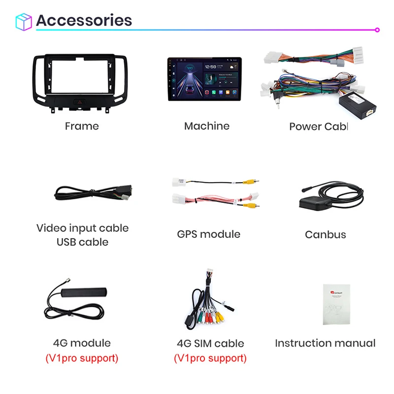 1. Штифт-штифт: Кабель питания Junsun radio' является штифтом для штифта, прост в установке;2. Встроенный Carplay/ Android Auto: Поддержка версии V1Pro, просто используйте кабель телефона, подключите его, стабильный и простой в использовании; (V1 поддерживает только Android Auto, но нужно покупать; V1C не поддерживает)3. Поддержка подголовника: только поддержка версии Junsun V1;