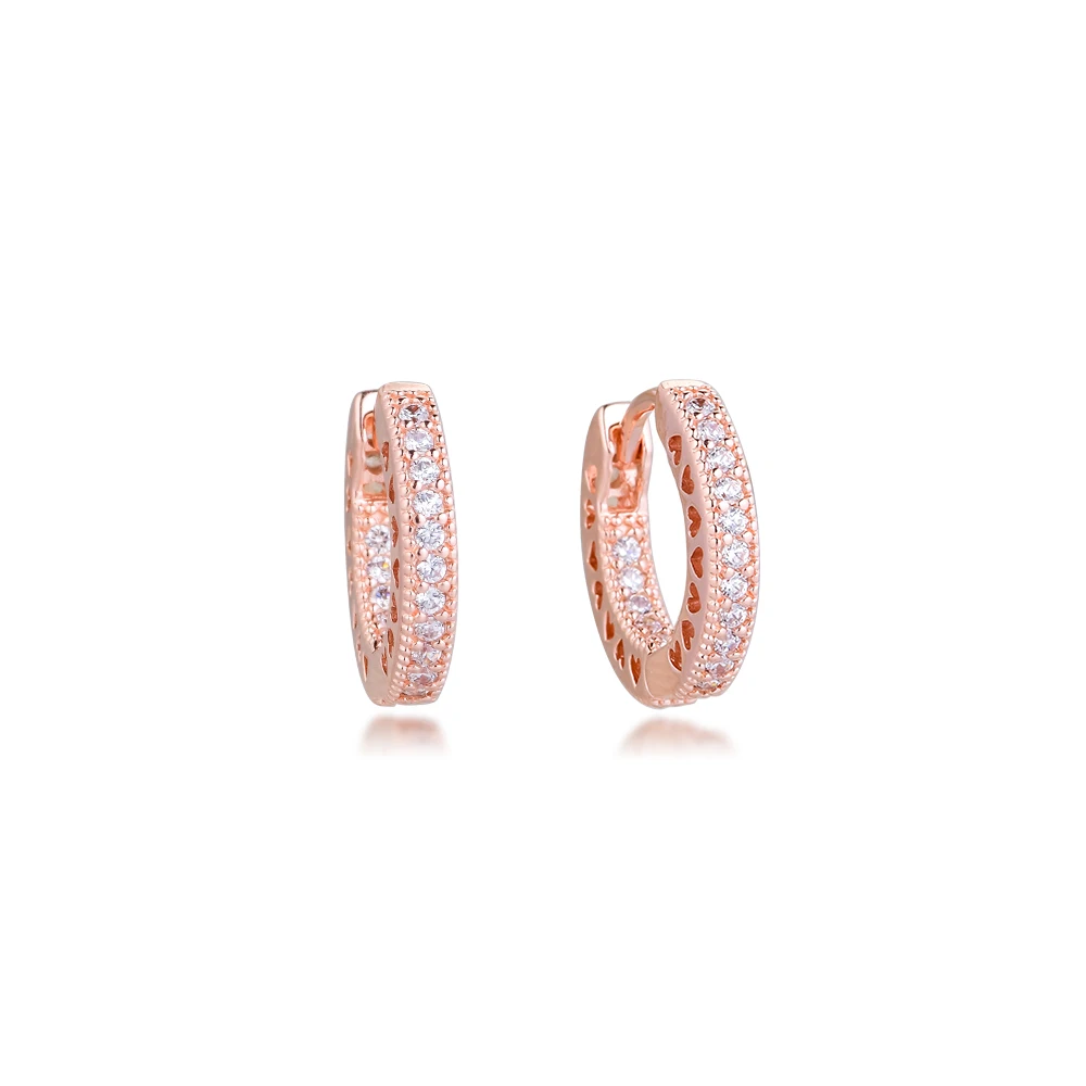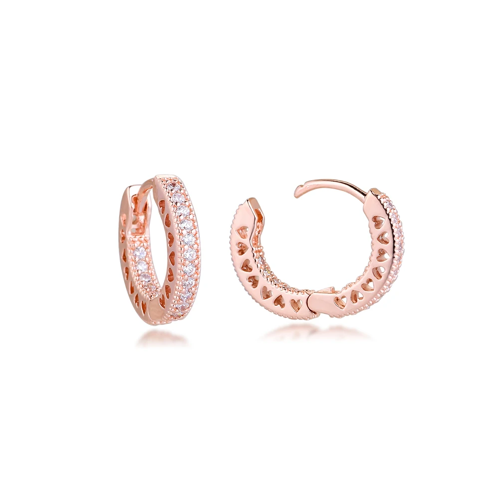 Покрытые розовым золотом серьги из серебра 925 пробы Серьги-кольца в форме сердца розы Аутентичные серьги из серебра 925 пробы Подарочные ювелирные изделия
