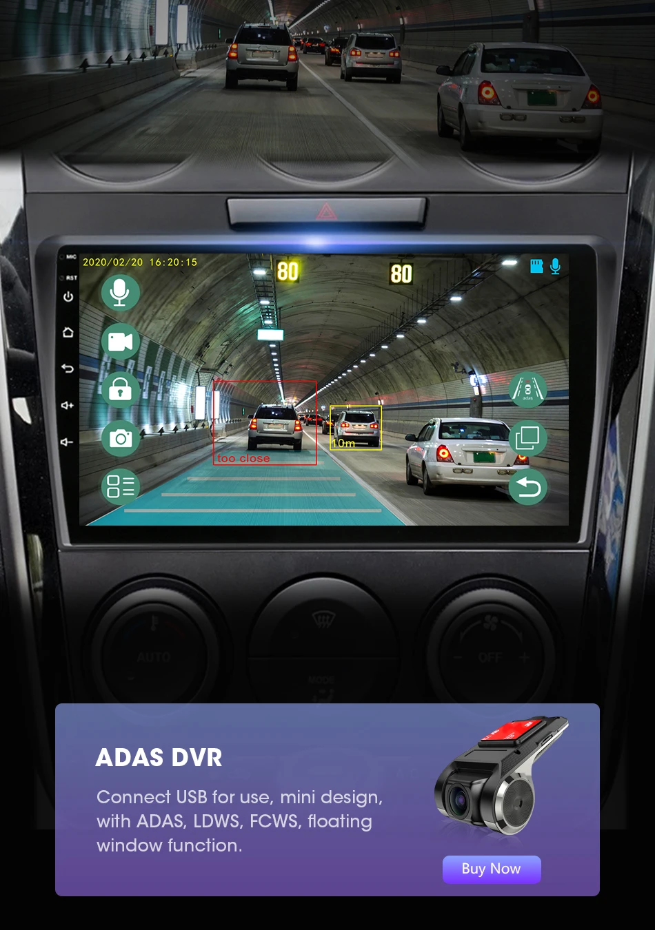 Поддерживает подключение к видеорегистраторУ ADAS. ADAS DVR имеет несколько встроенных ассистивных технологий вождения, вставляя высококачественную карту памяти TF для записи каждого момента вашего вождения.