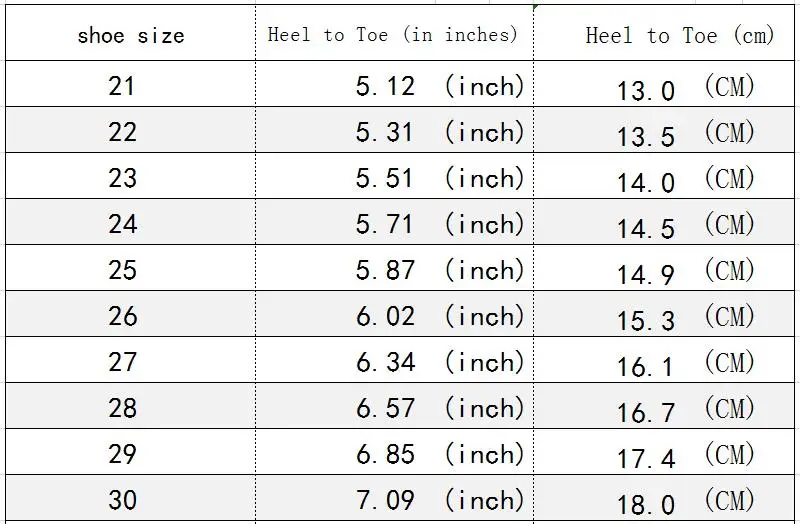 Поскольку все размеры детской обуви отличаются, при заказе детской обуви вы должны соответствовать нашим размерам и внутренней длине.