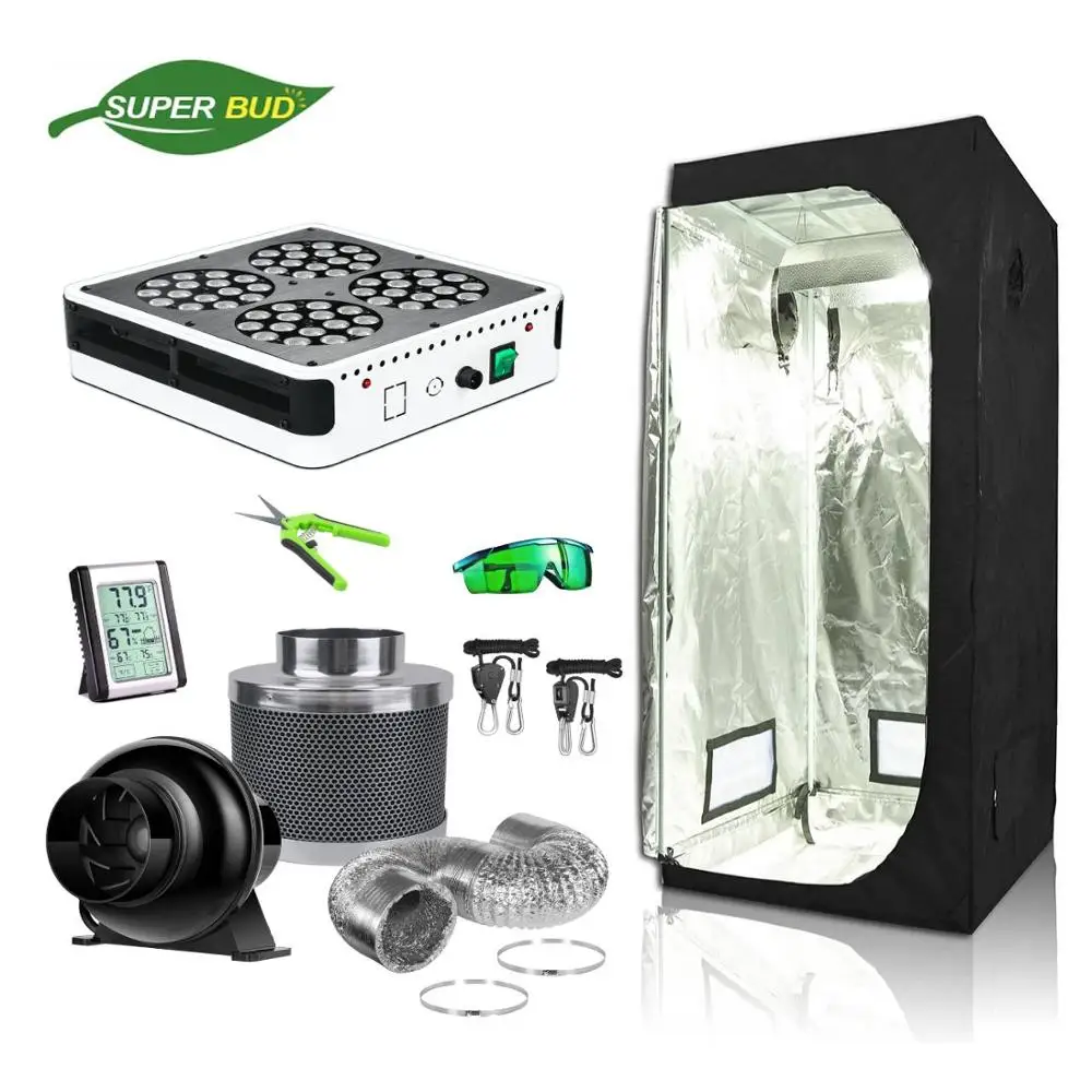 Полный комплект для выращивания растений SuperBud, гидропонная система контроля запаха воздуха 4 дюйма + 60x60x140 см, комбинированная растительная палатка + светодиодная лампа для выращивания