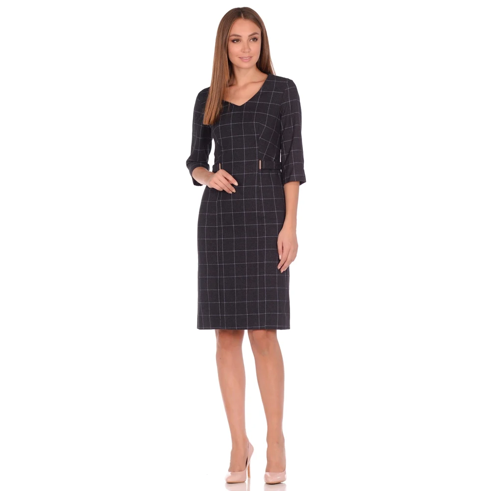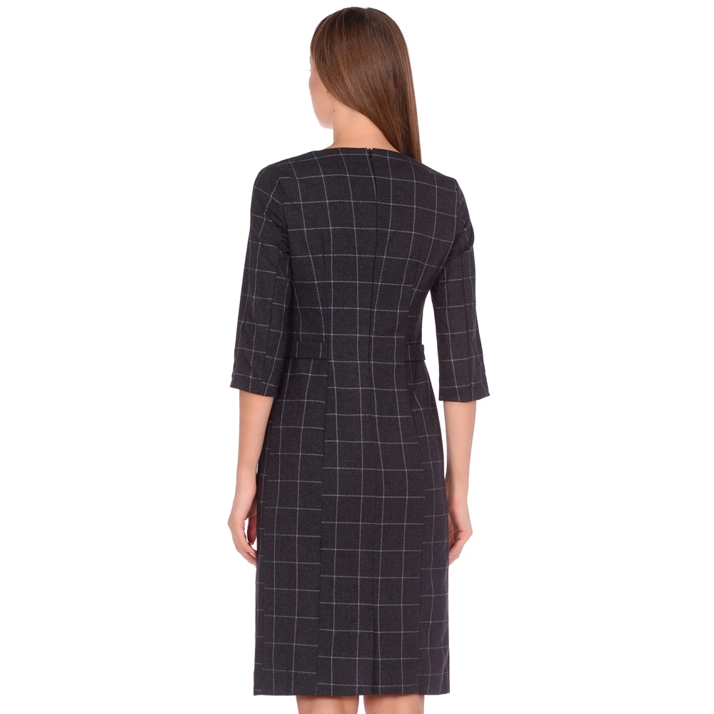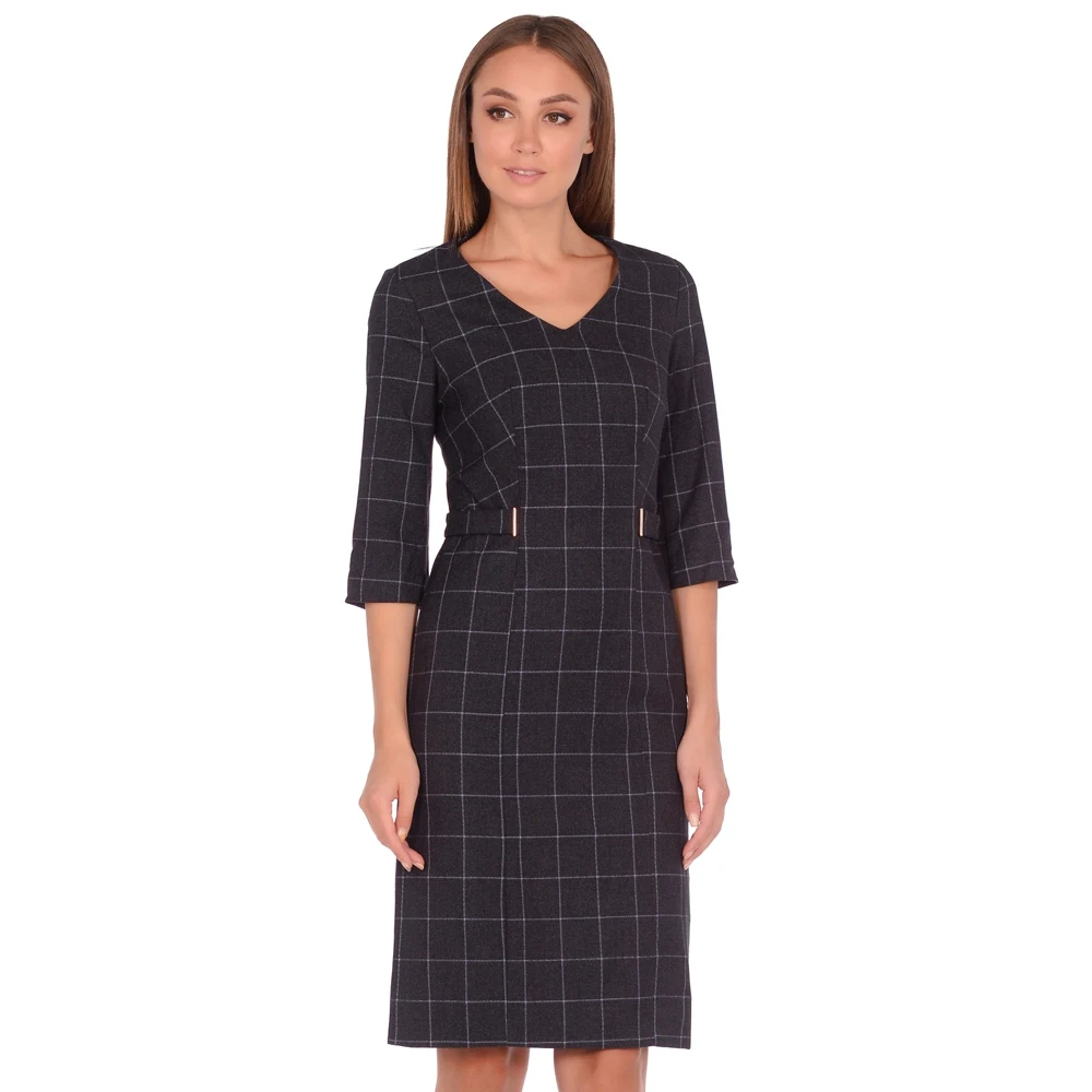 Производитель: Россия. Коллекция: ОСЕНЬ-ЗИМА 2018/2019. ~ Платье оригинального кроя - ваша модная находка для делового гардероба. Обилие вертикальных линий и приталенный силуэт визуально делают фигуру стройнее и привлекательнее. Модель украшена трендовым узором в клетку. Боковые части платья дополнены поясками из ткани. Изделие застёгивается на молнию на спине..