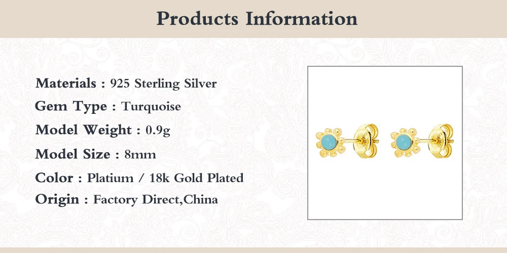 Женские серьги-гвоздики из серебра 925 пробы с бирюзовой застежкой