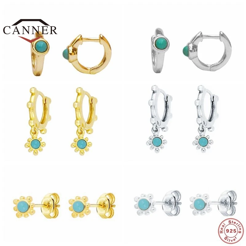 Женские серьги-гвоздики CANNER из настоящего серебра 925 пробы, бирюзовые серьги с пряжкой для пирсинга, ювелирные изделия