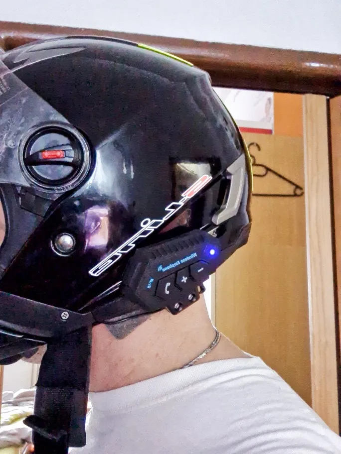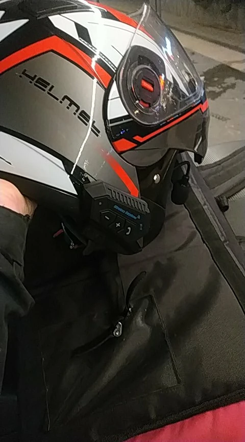 Гарнитура отлично села в посадочные места в шлеме. Кнопки крупные и хорошо чувствуются даже в толстых кожаных перчатках. Учтите, что в шлеме она будет находиться в 10-15мм от уха, так что даже на максимальной громкости будет негромко. Пришла заряженной на 80%. Под вопросом только её влаго/и холодоустойчивость.