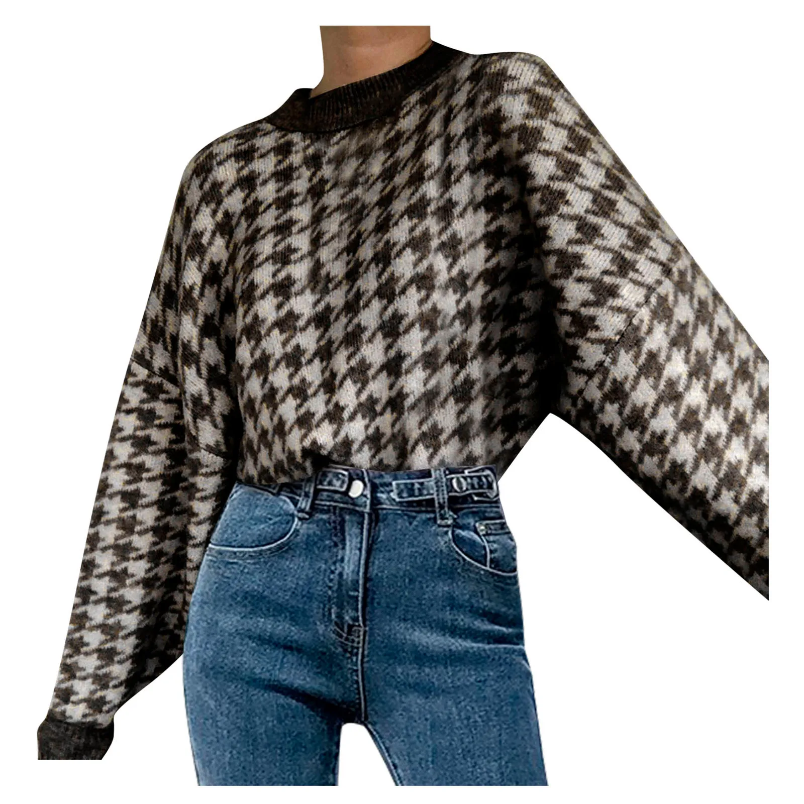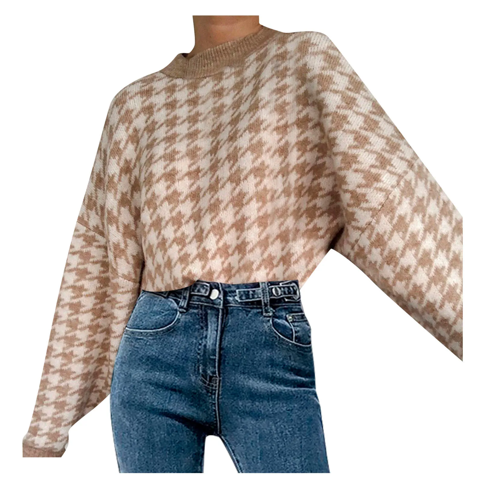 Женский свободный свитер с круглым вырезом и длинным рукавом размера плюс Пожалуйста, проверьте таблицу размеров перед заказом. Если вы не уверены в размере, пожалуйста, отправьте нам сообщение