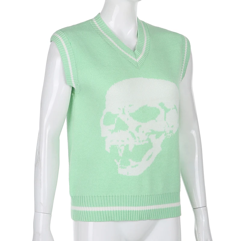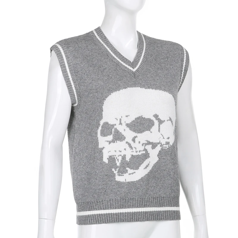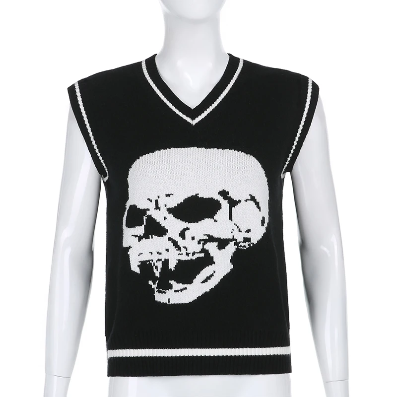 Свитер Женский вязаный, с принтом черепа, Осень-зима