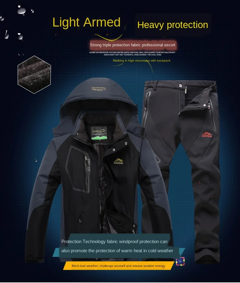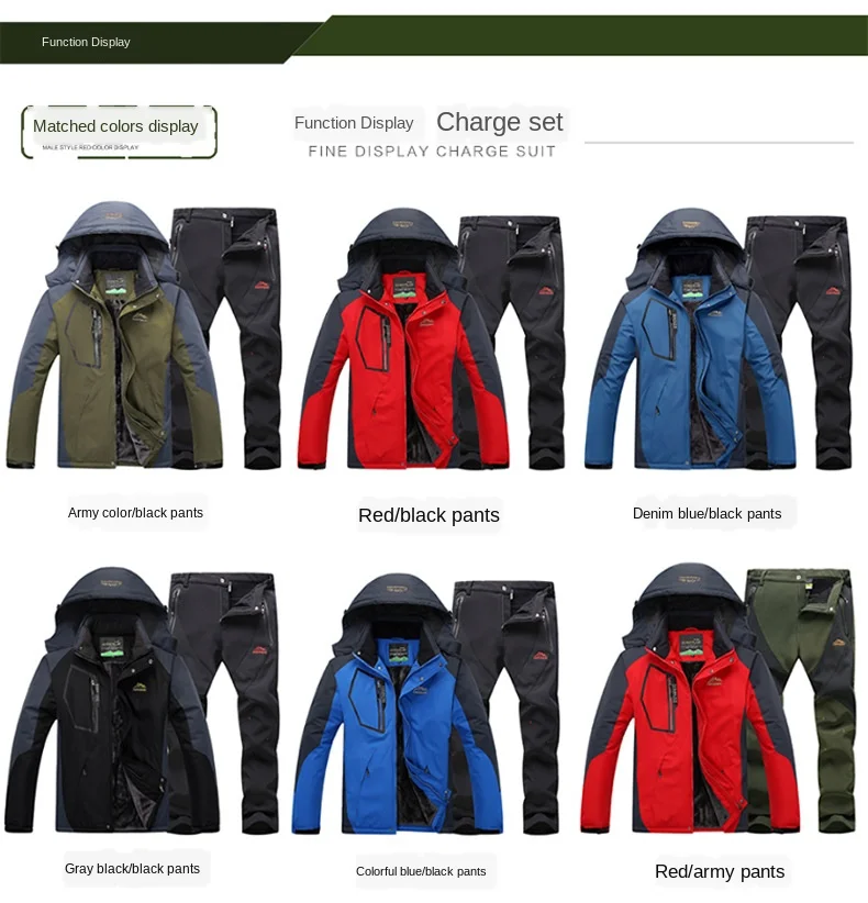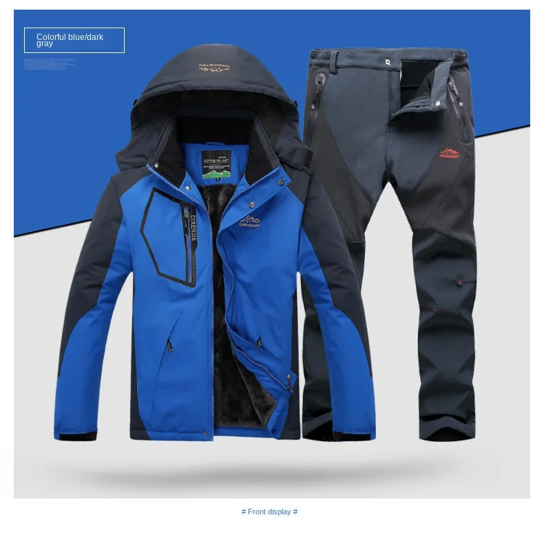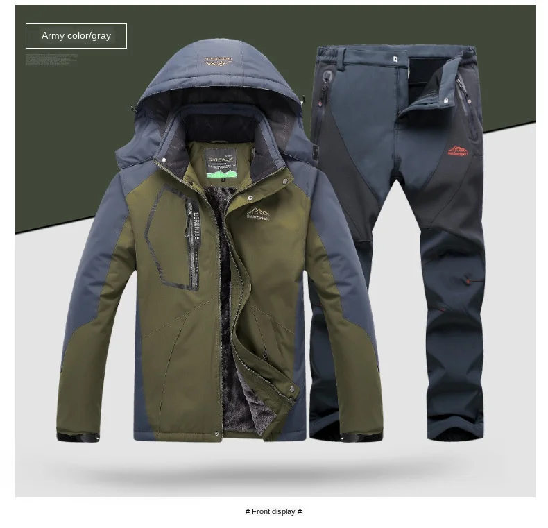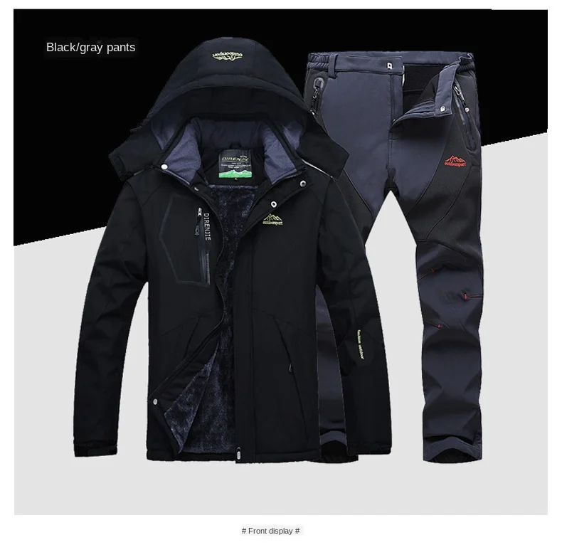 Зимний лыжный костюм для мужчин, флисовый теплый ветрозащитный водонепроницаемый лыжный костюм, комплект для катания на сноуборде, уличная лыжная куртка + штаны, комплект для сноуборда