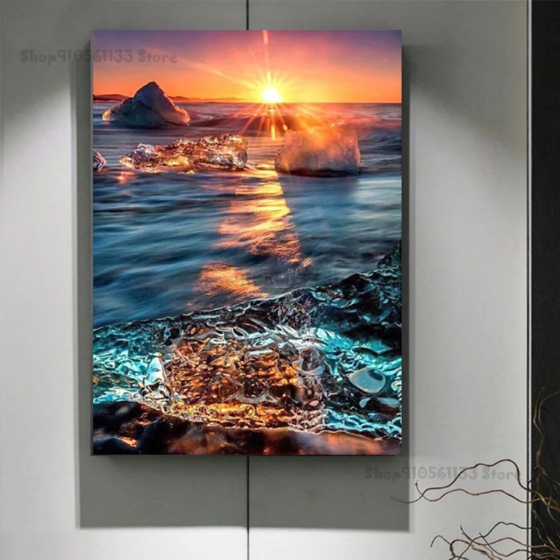 Картина из страз 5D с изображением пейзажа океана восход солнца, полностью квадратная, круглая, алмазная вышивка, мозаика, картина Стразы GG2212