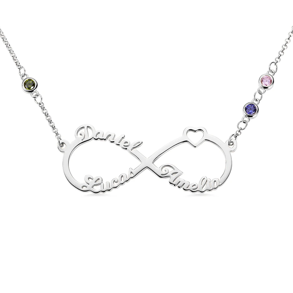 AILIN Бесконечность на заказ ожерелье с 3 именами по месяцу рождения сердцем из стерлингового серебра 925 пробы женские рождественские ювелирные изделия персонализированные подарки