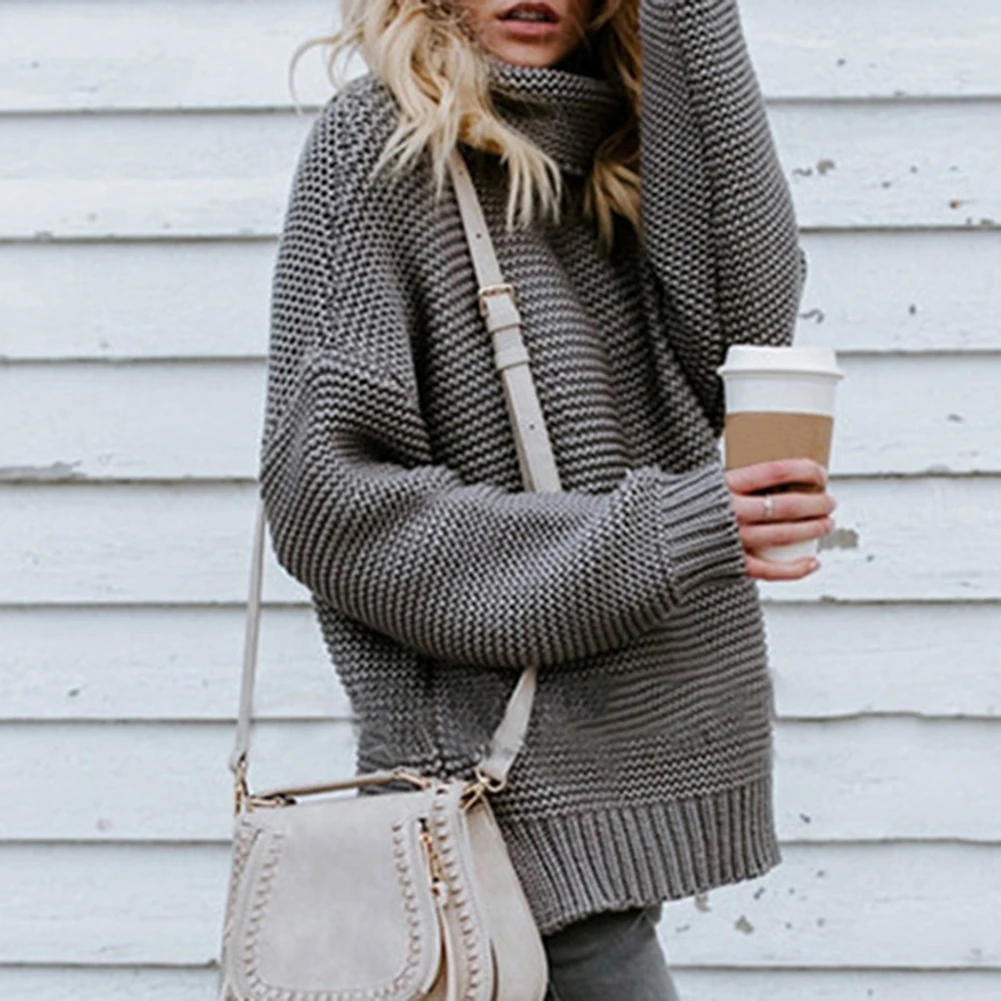 Женский Повседневный трикотажный пуловер с длинными рукавами и воротником-черепашкой на осень и зиму 2020