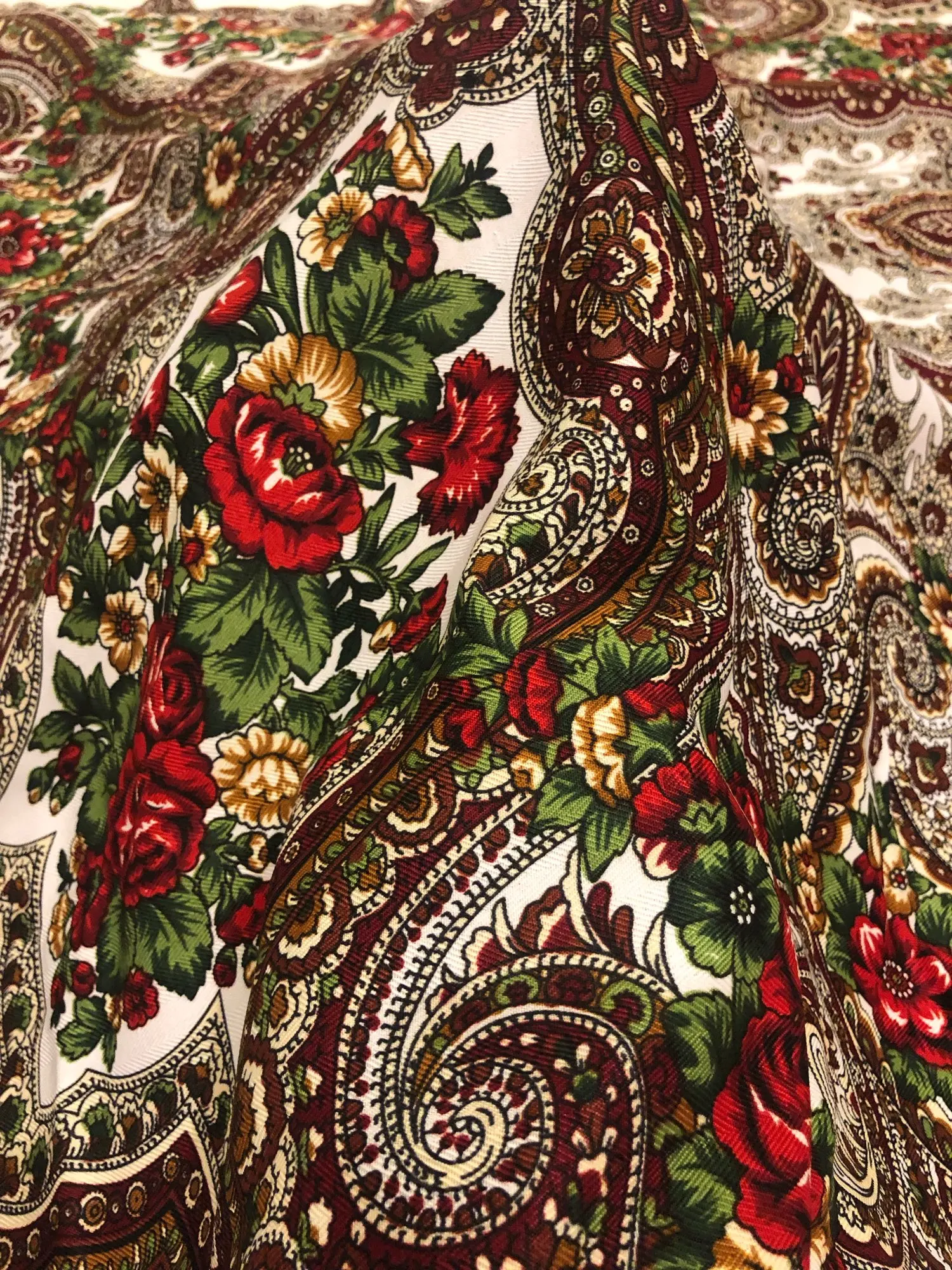 Очень красивый платок, я именно такой и хотела! Большой, яркий, стильный, с шелковистыми кистями...Заказала кремовый, но немного боялась, что будет очень светлый, маркий... И вот получила платок, и цвет обалденный, типа светлый кофе с молоком...в середине нежно-кремовый, узоры сказочные! На фото этого не увидеть... Я так довольна, вот то, что надо! И на неделю быстрее, чем ожидалось. Спасибо продавцу, буду ещё заказывать обязательно!