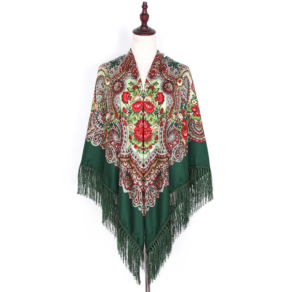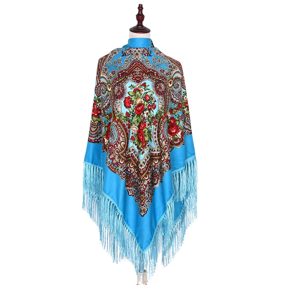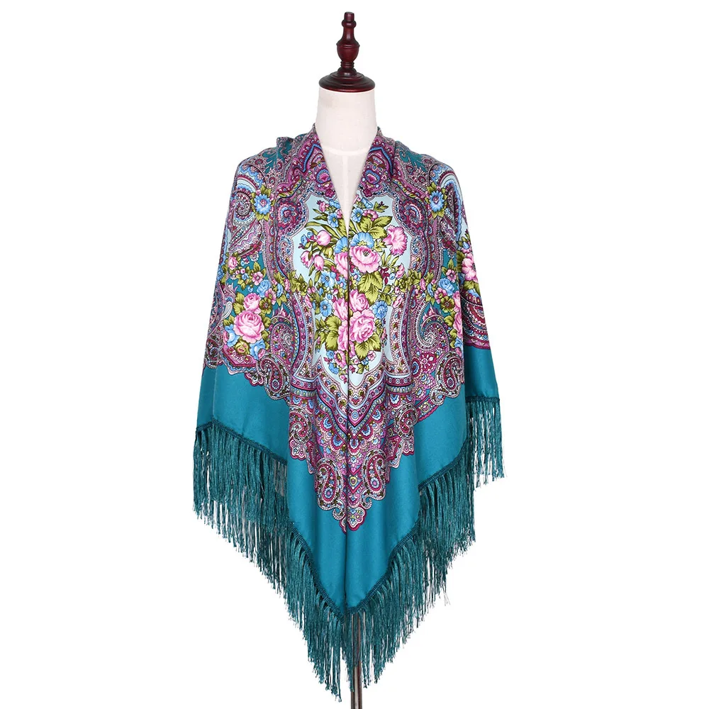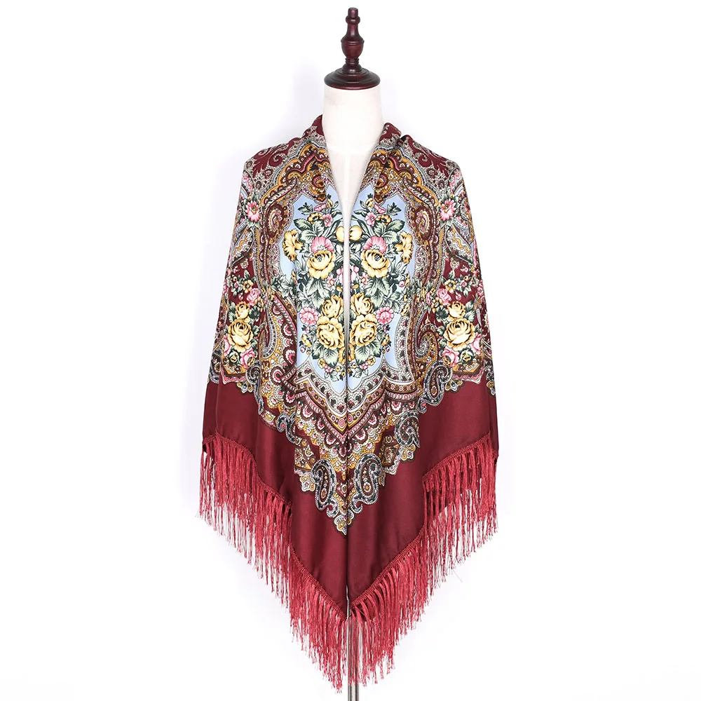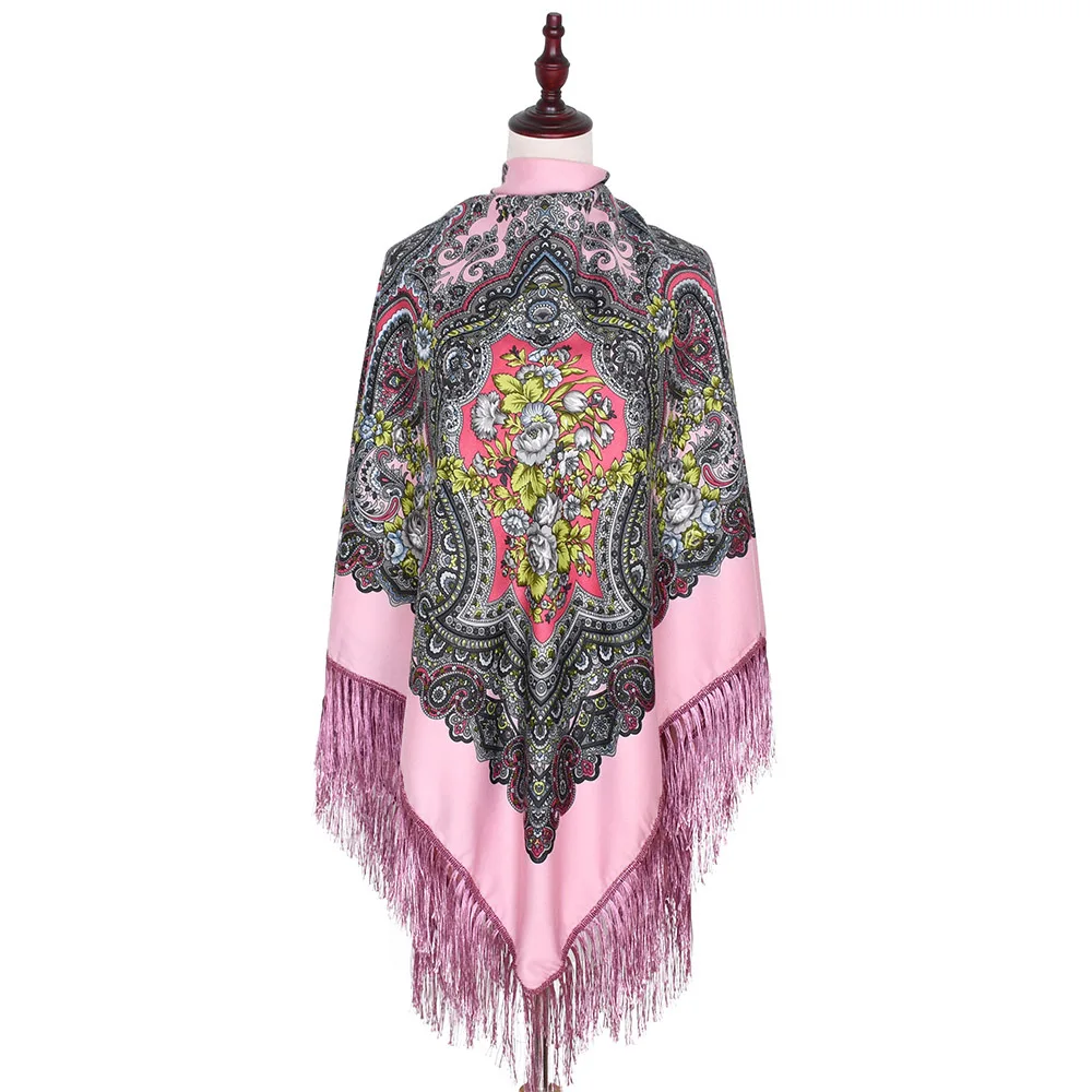 Шарф квадратный женский с бахромой, в стиле ретро, с цветочным принтом, шарфы в национальном стиле, хиджаб, Пляжная шаль для путешествий, 160*160 см