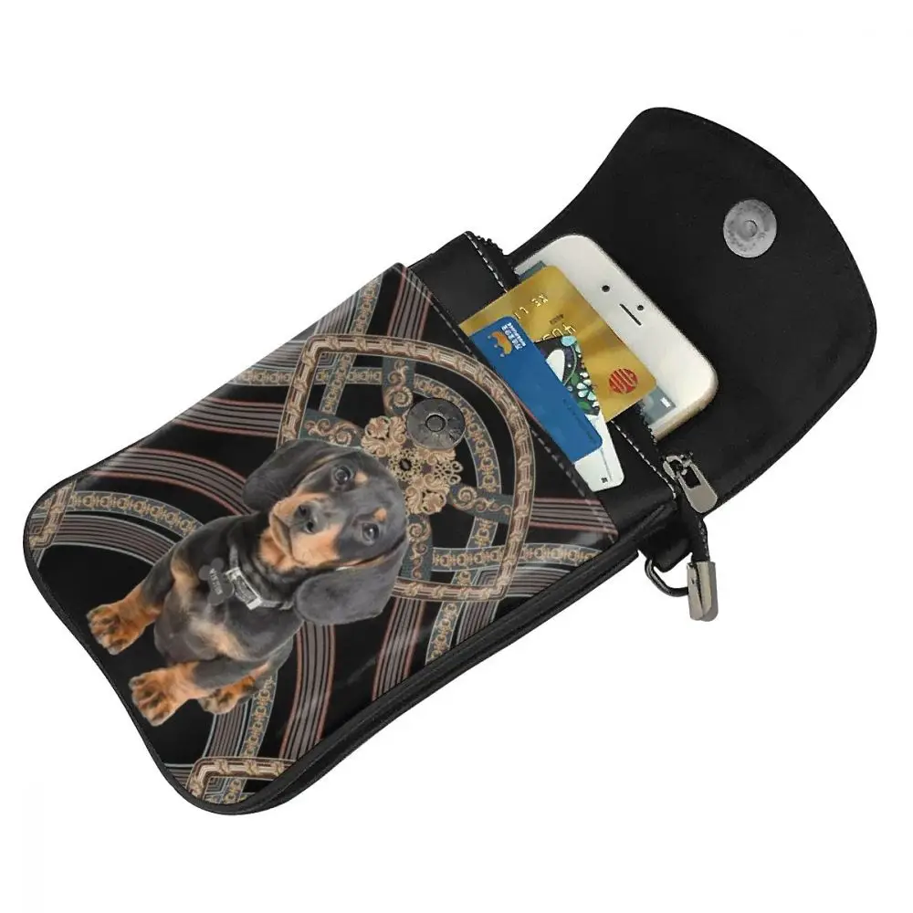 Европейский стиль маленькая сумка-мессенджер для женщин такса с принтом собаки Мобильный телефон сумка женская кожаная сумка через плечо разнообразные сумки кошелек