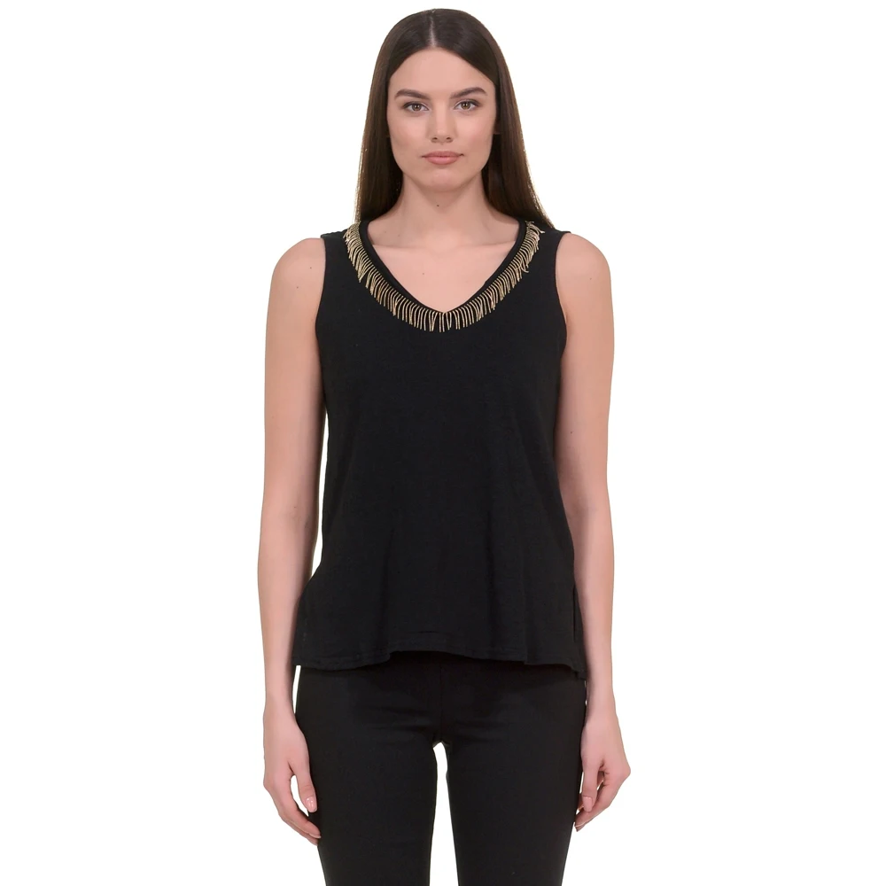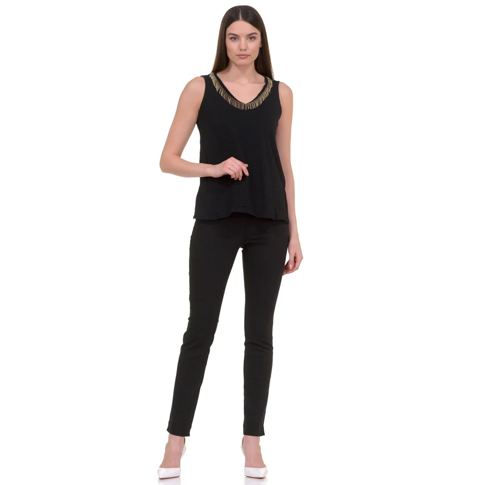 Производитель: Россия. Коллекция: ВЕСНА-ЛЕТО 2019. ~ Лёгкая майка из дышащего хлопкового трикотажа будет оптимальным выбором для жаркой погоды. Модель имеет свободный крой с двумя разрезами по бокам, благодаря чему в ней вам будет не страшен летний зной. V-образный вырез изделия украшен бахромой. А это, кстати, один из актуальнейших трендов текущего сезона..